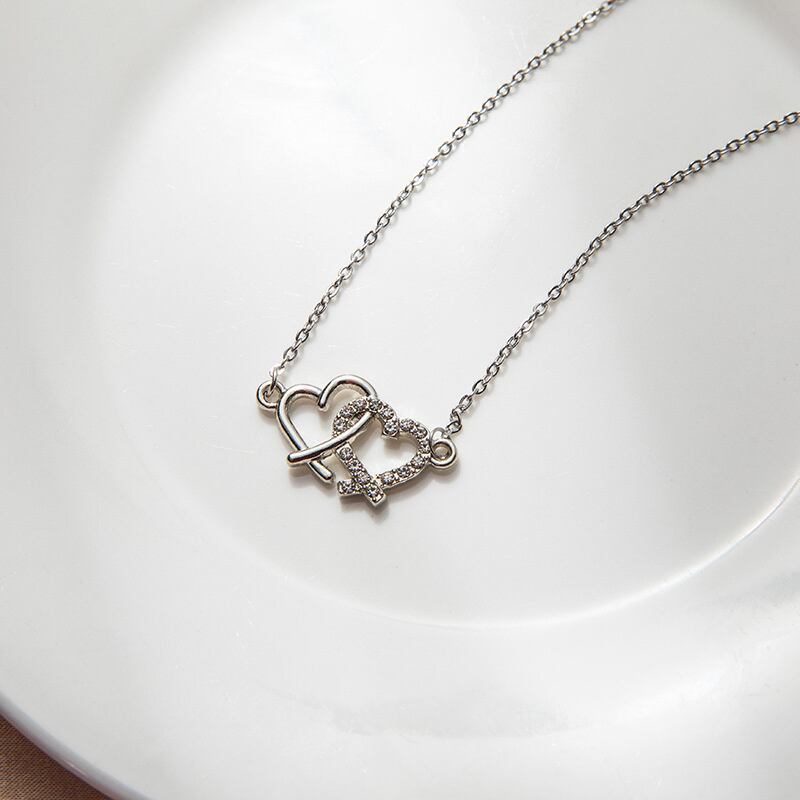 送料無料 トレンディなダブルハートネックレス女性タイニーホールラブハートペンダントネックレスチャームチョーカークラビクルチェーンウェディングジュエリーギフト レース アクセサリー AE888871843204231