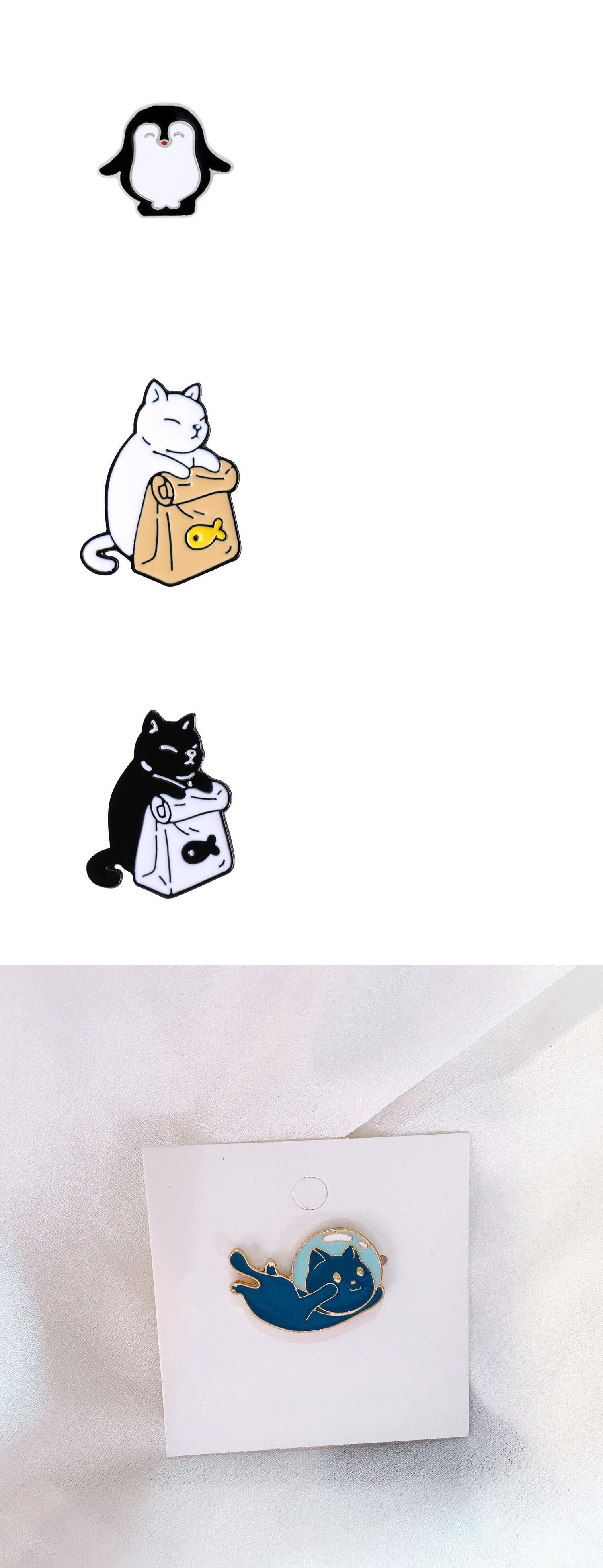 送料無料 漫画ペンギン子猫エナメル襟章Wmen女の子かわいい動物黒白猫ブローチジャケットバックパックジュエリー ホワイト ブラック 大人ガーリー スウィート キュート カジュアル リュック アクセサリー AE888890441956313