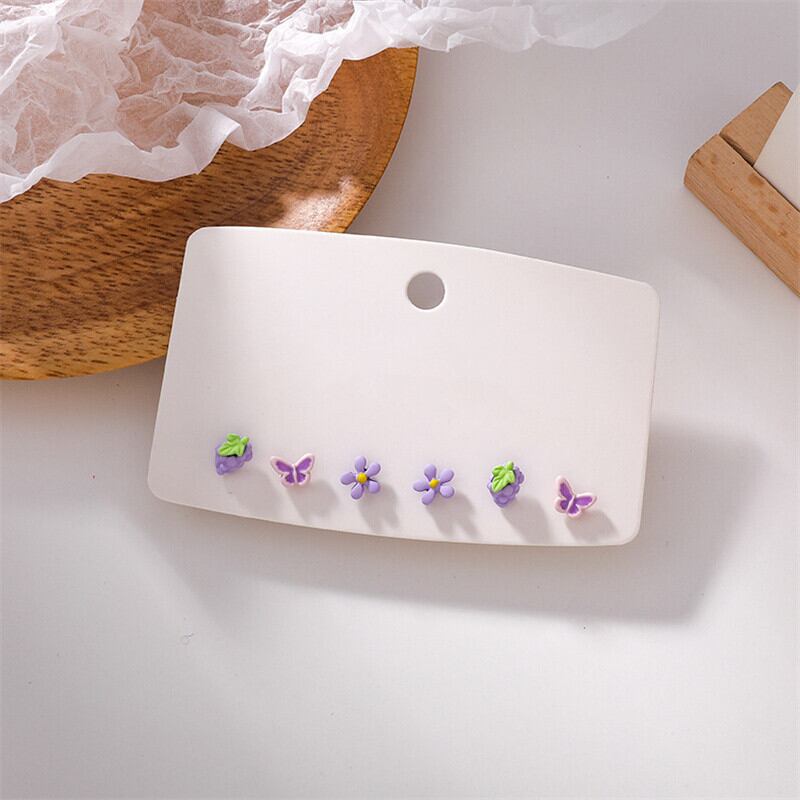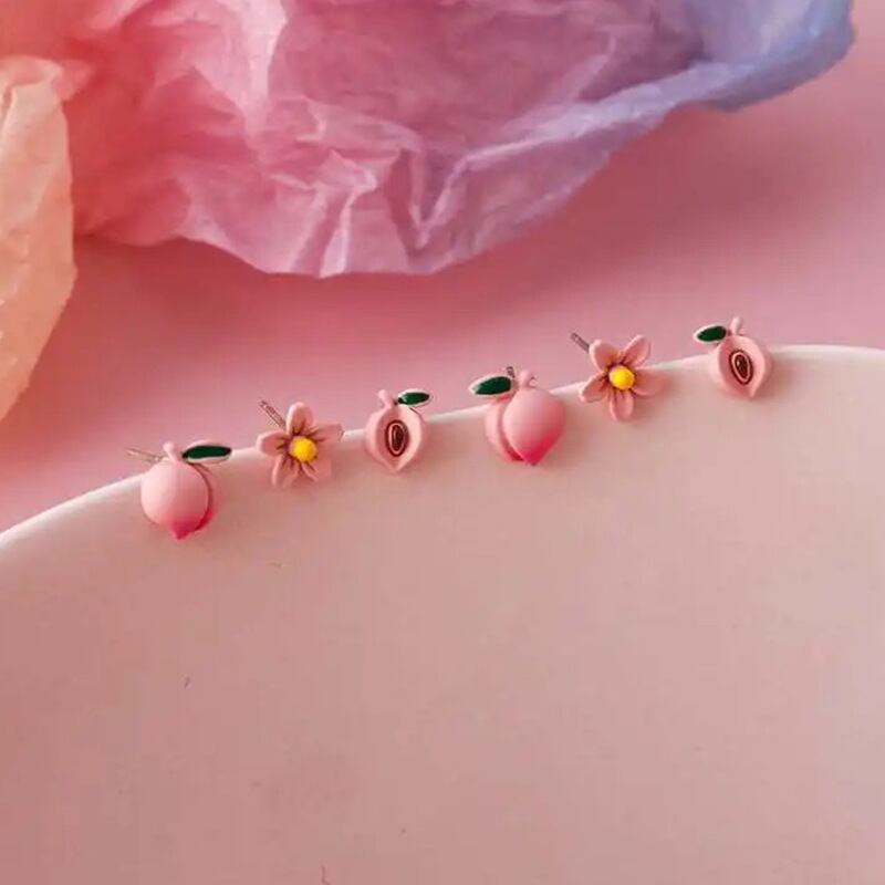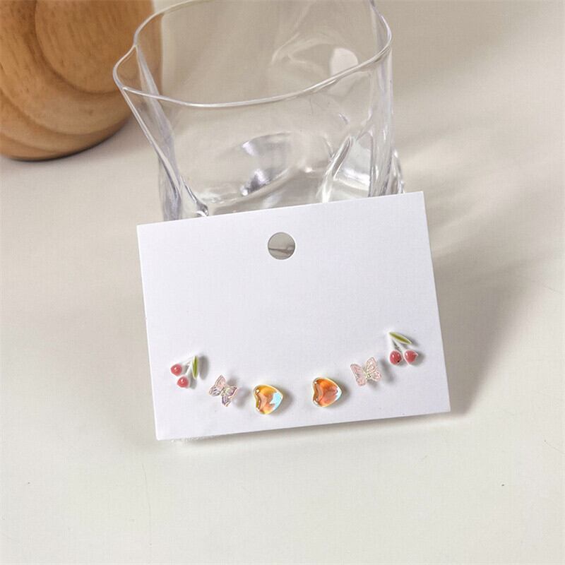 送料無料 3ペアアクリルレジンフルーツグレープフラワーバタフライイヤリングセット女性スウィートピーチスタッドピアスパーティーバースデージュエリー 大人ガーリー キュート カジュアル 指輪 フラワーデザイン アクセサリー AE888841794836622