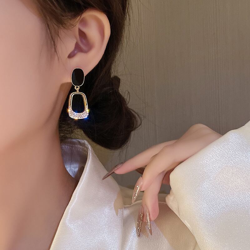 送料無料 ClicGeometricDangleイヤリング女性ブラックホロウスクエアラインストーンイヤリングダブルハートラウンドイヤリングジュエリー 指輪 スクウェア アクセサリー AE88889185627615