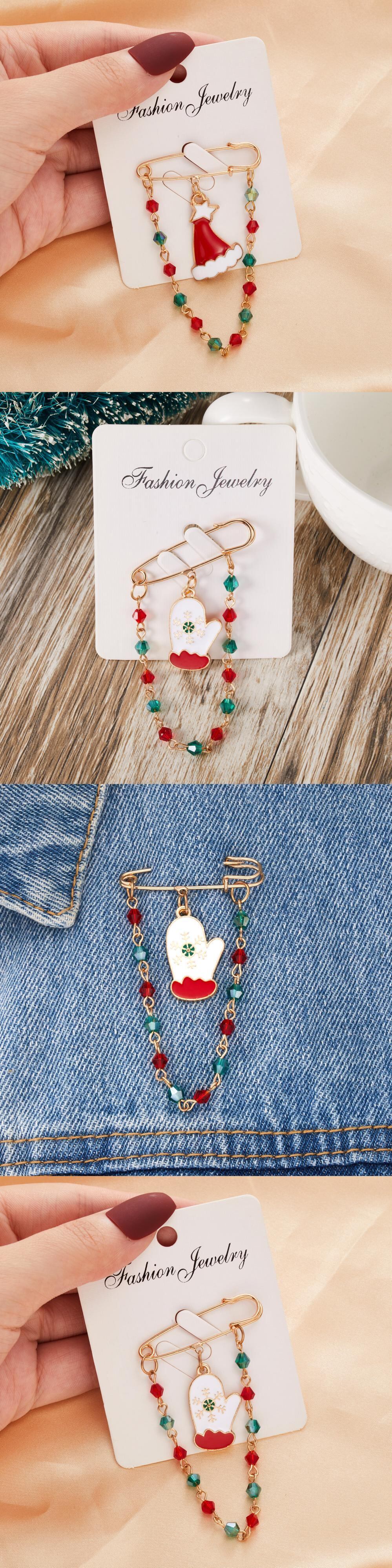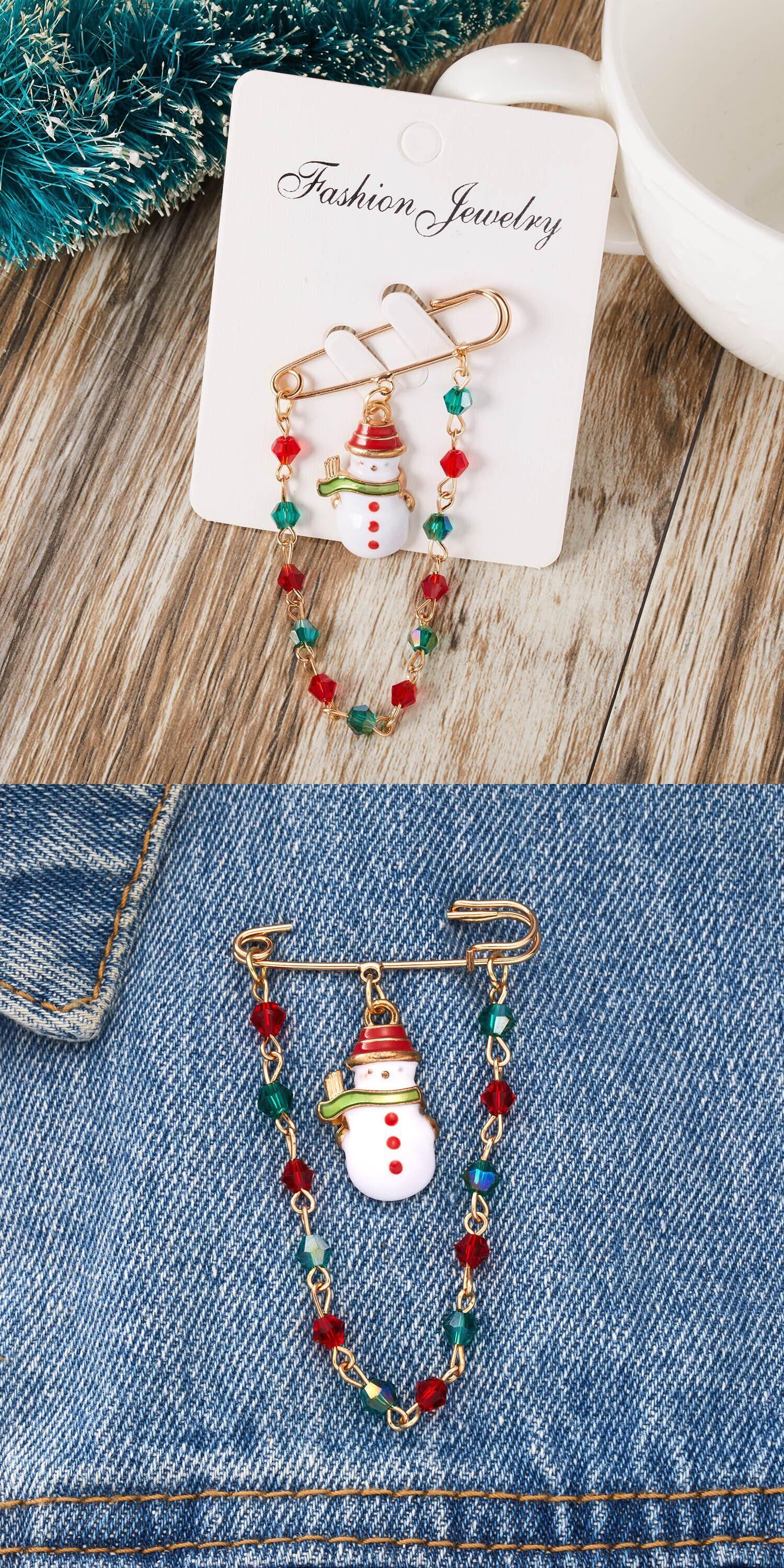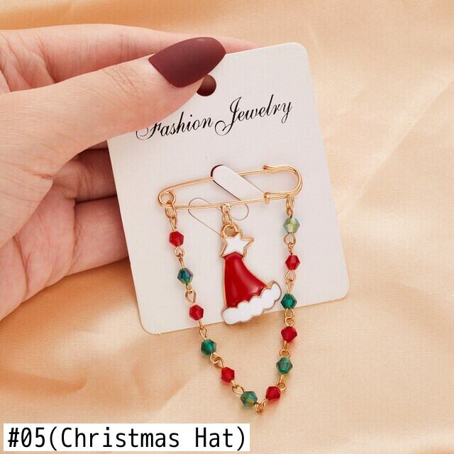 送料無料 メリークリスマスブローチピン女性女の子カラフルなビーズチェーンスノーマンエルクサンタクロースエナメルバッジ年ジュエリー アクセサリー AE888883602702063
