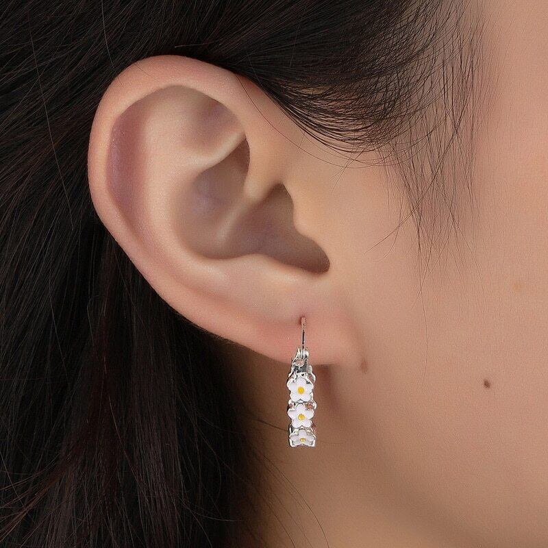 送料無料 小さなデイジーラウンドフープイヤリング女性甘い繊細なフラワーイヤリングブライダル婚約ウェディングジュエリー 大人ガーリー スウィート キュート カジュアル 指輪 フラワーデザイン アクセサリー AE888885000348049