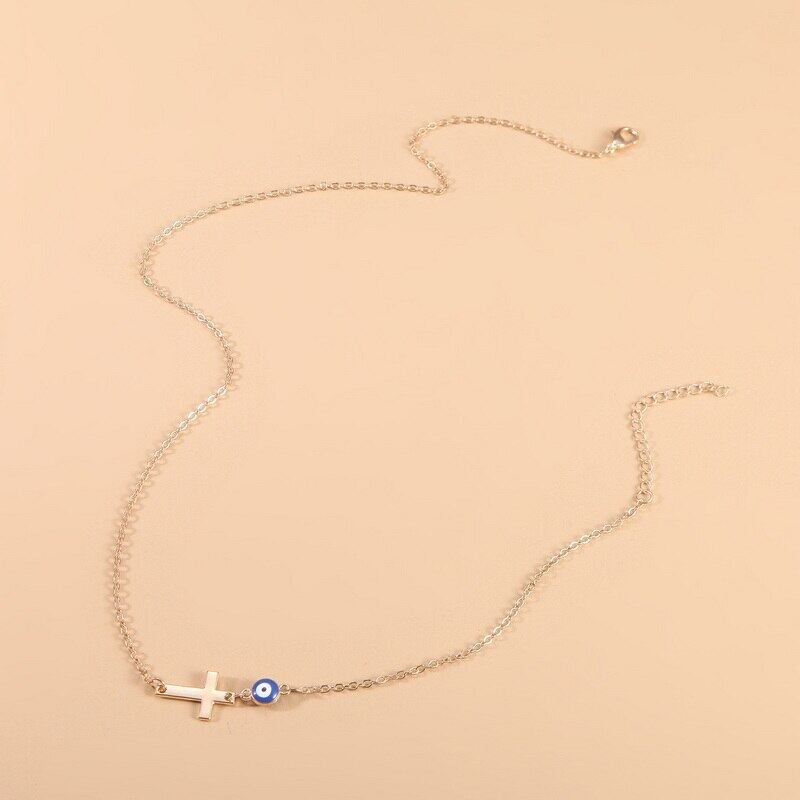 送料無料 シンプルなトルコの邪眼クロスチョーカーネックレス女性プラネットペンダントクラビクルチェーンガールズウェディングパーティージュエリーギフト レース アクセサリー AE888816073407879