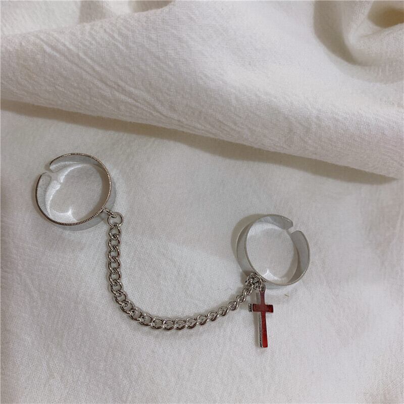 送料無料 パンククロスチェーンリングアジャスタブルジョイントリングヒップホップフィンガーリングレディースシルバーカラーメッキヴィンテージパーソナリティリングジュエリー 指輪 銀 ビンテージ アクセサリー AE888834381844618
