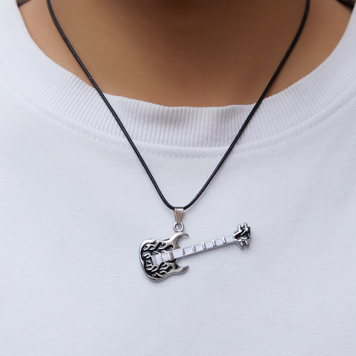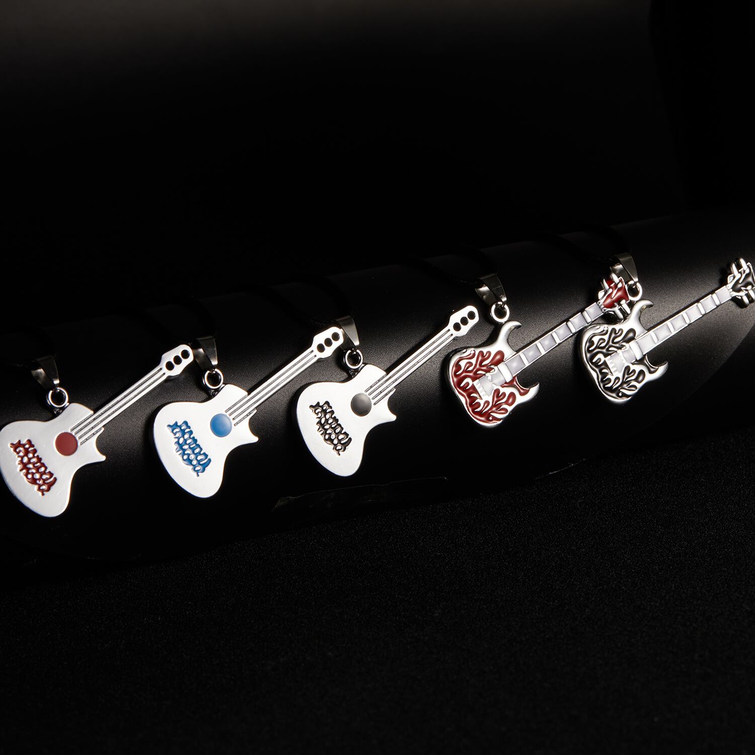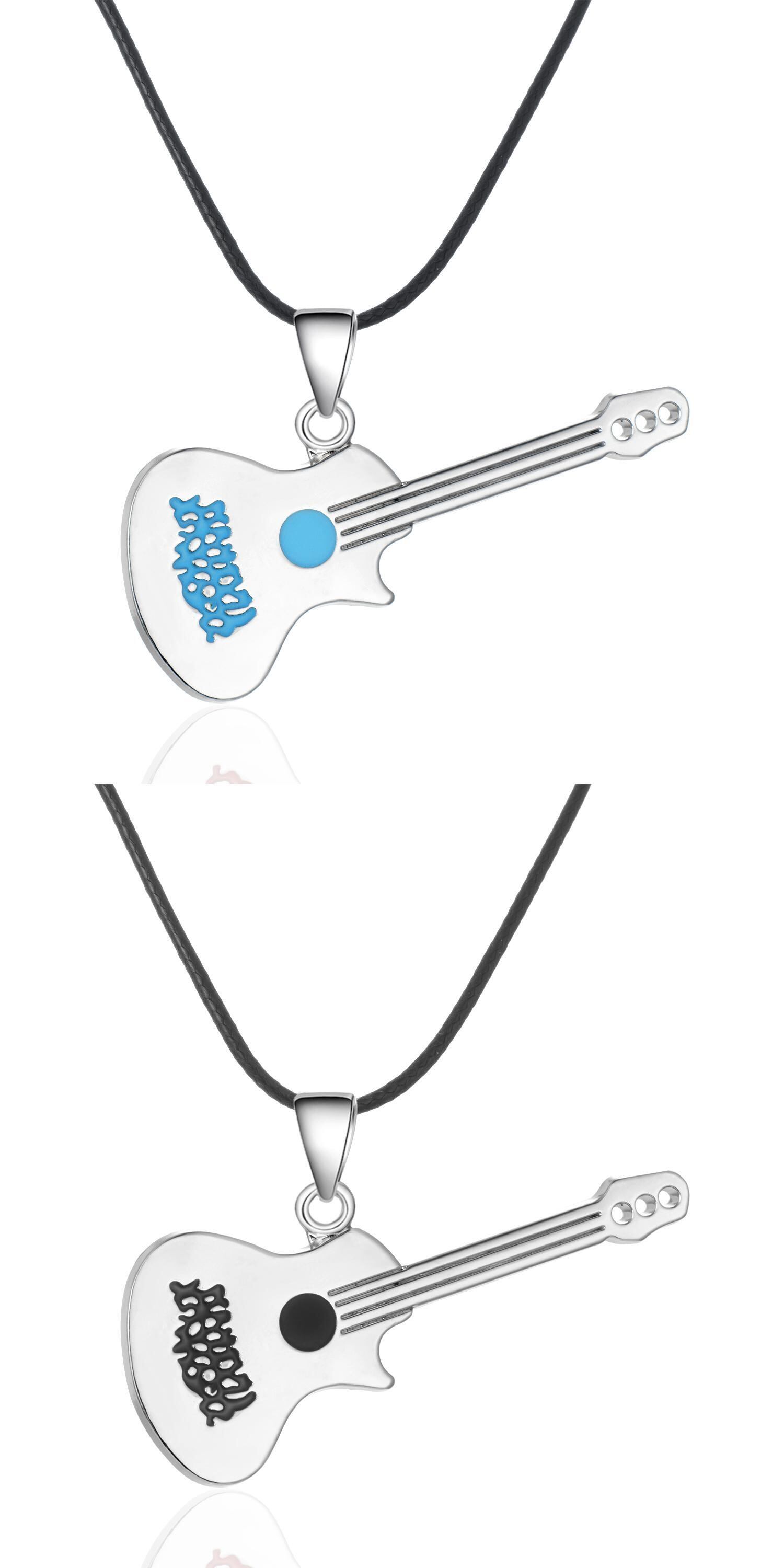 送料無料 ステンレススチールギターネックレス女性と男性ブラックロープロックミュージックバイオリンペンダントネックレスバレンティンの日ジュエリー レース アクセサリー AE888898885698745