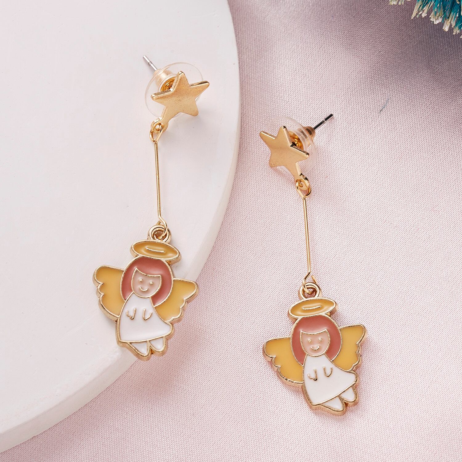 送料無料 かわいいスター人形赤ちゃんのぶら下がりイヤリング女性クリスマス漫画天使の鐘イヤリング最高の贈り物女の子年クリスマスジュエリー 大人ガーリー スウィート キュート カジュアル 指輪 アクセサリー AE888825956113414