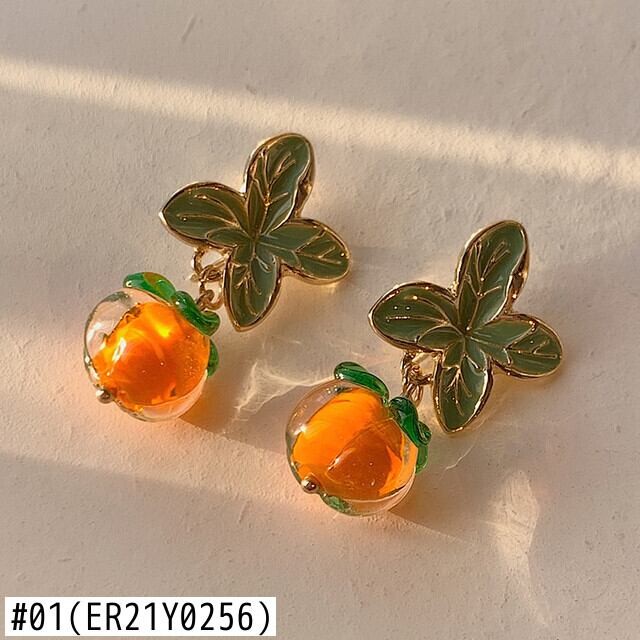送料無料 緑の葉柿女性女の子学生釉薬Glオレンジ色のイヤリングジュエリーアクセサリー 指輪 グリーン アクセサリー AE888872460850655