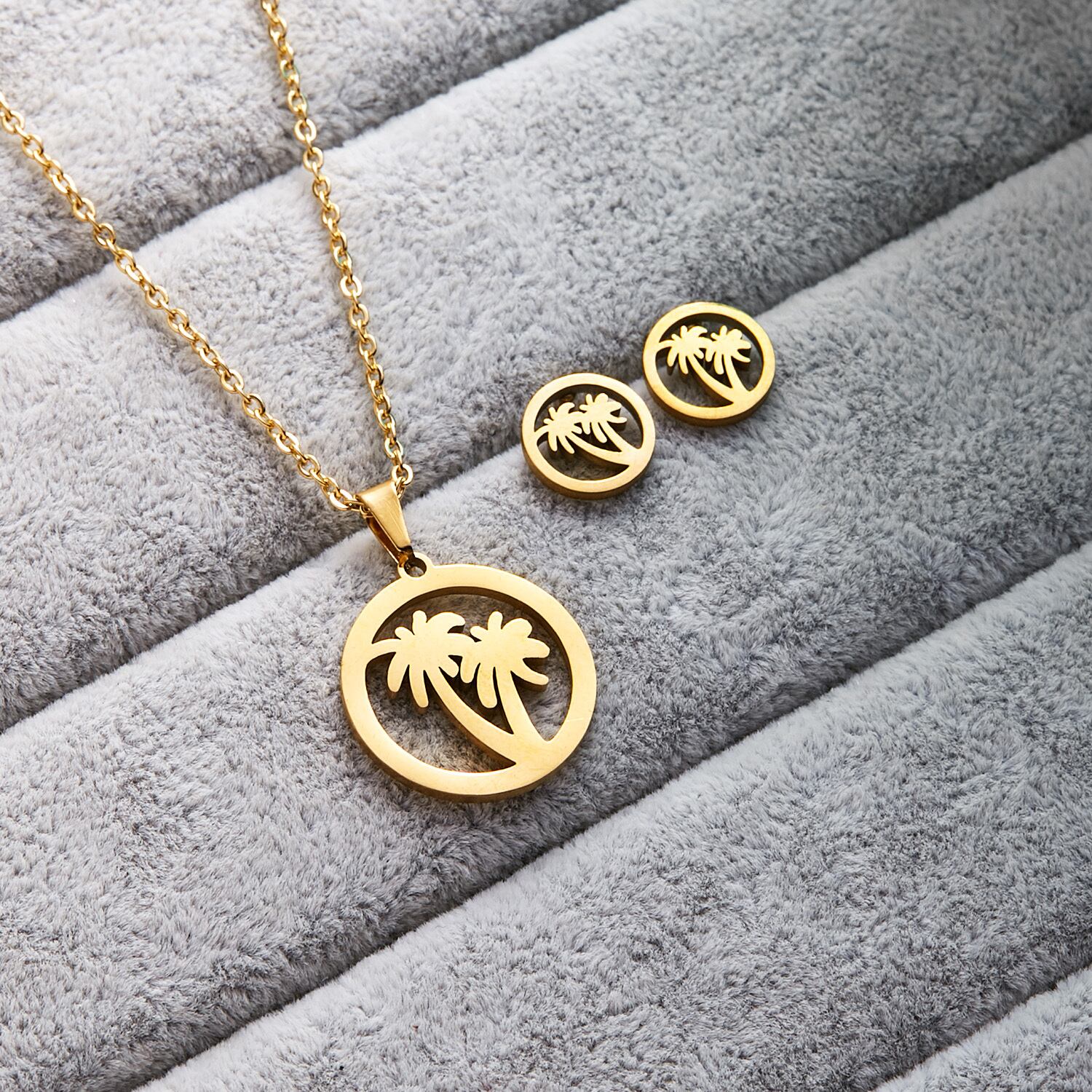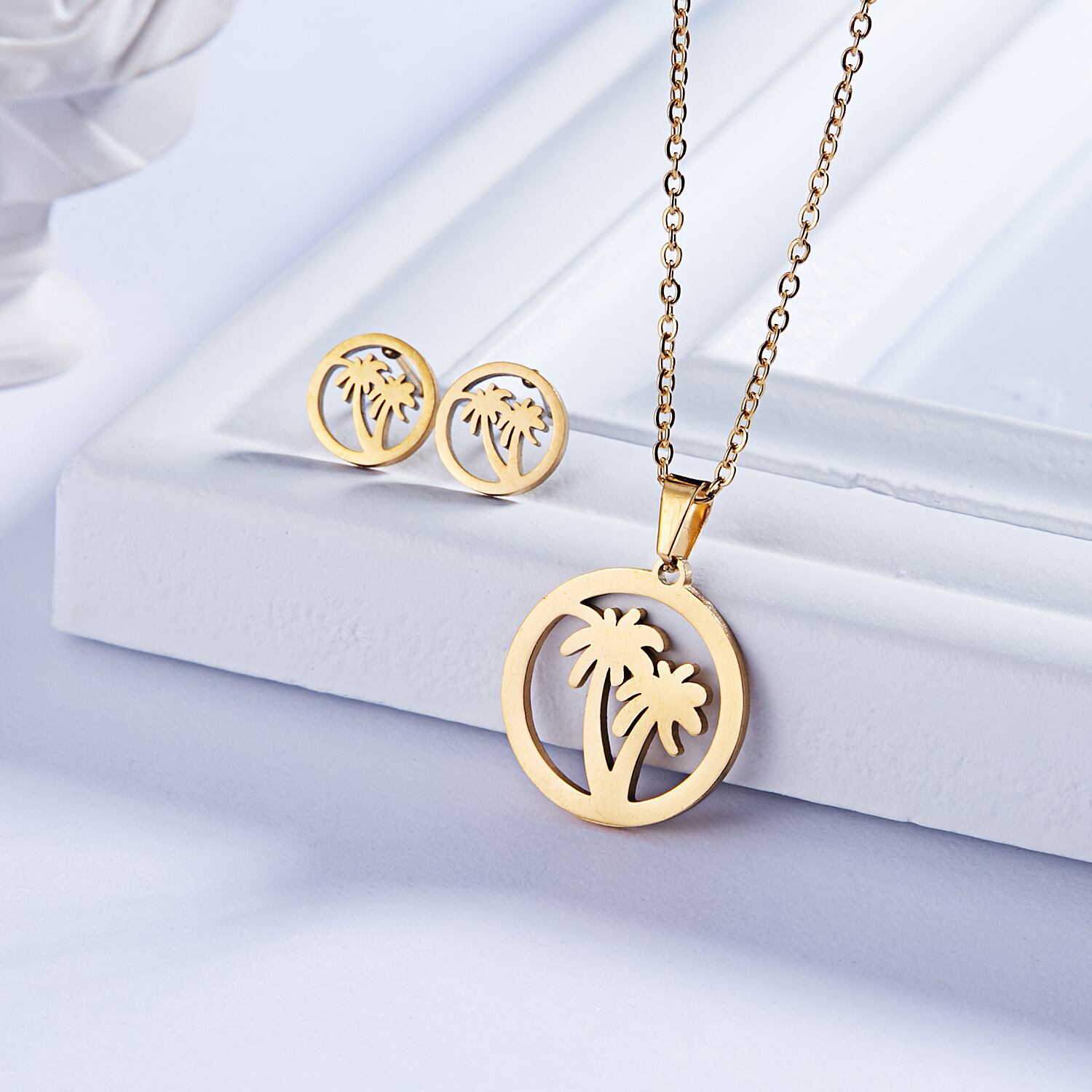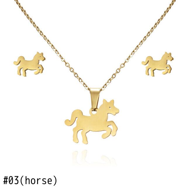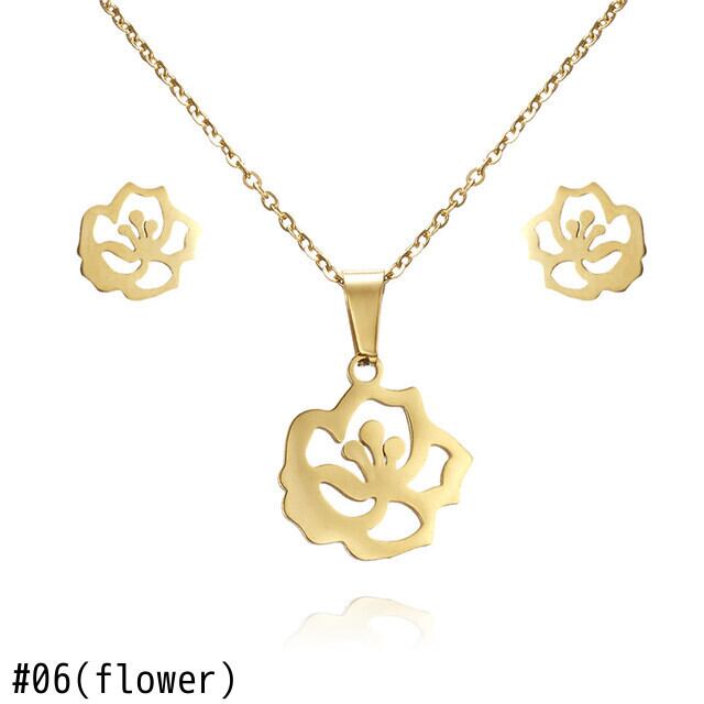 送料無料 ステンレス鋼パイナップルフラワーバタフライホースジュエリーセット女性動物魚の骨ネックレスイヤリングセットゴールドカラー レース 指輪 フラワーデザイン アクセサリー AE888866567141130