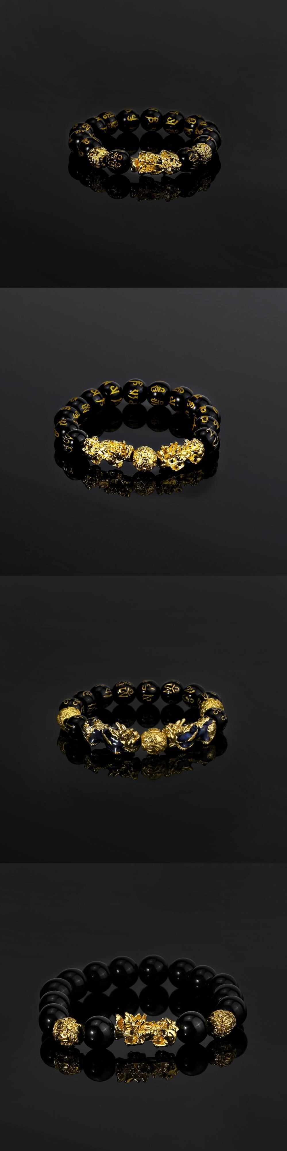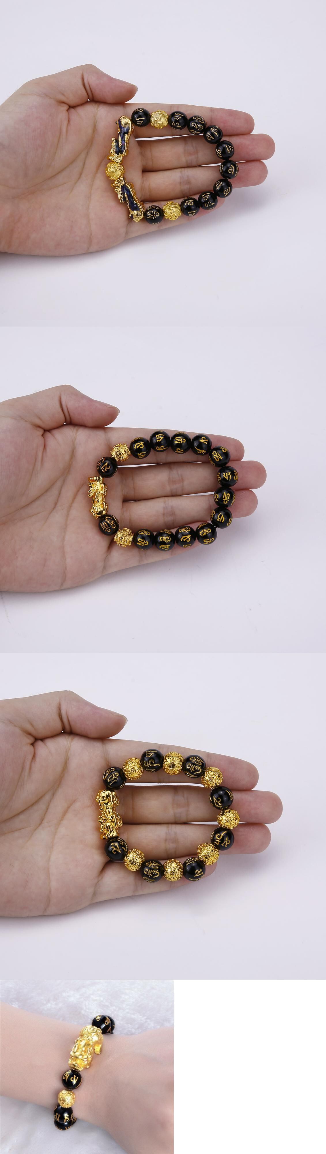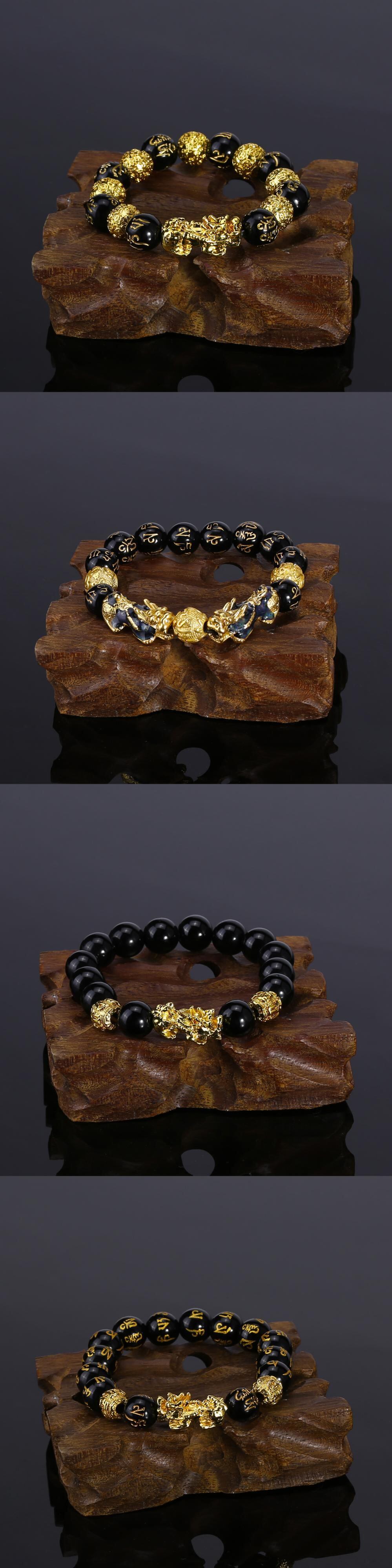 送料無料 チャイニーズスタイルの貔貅ブレスレット男性女性風水シミュレートされた黒曜石の石のビーズブレスレットリストバンド富ラッキージュエリー 人工 アクセサリー AE888829607879792