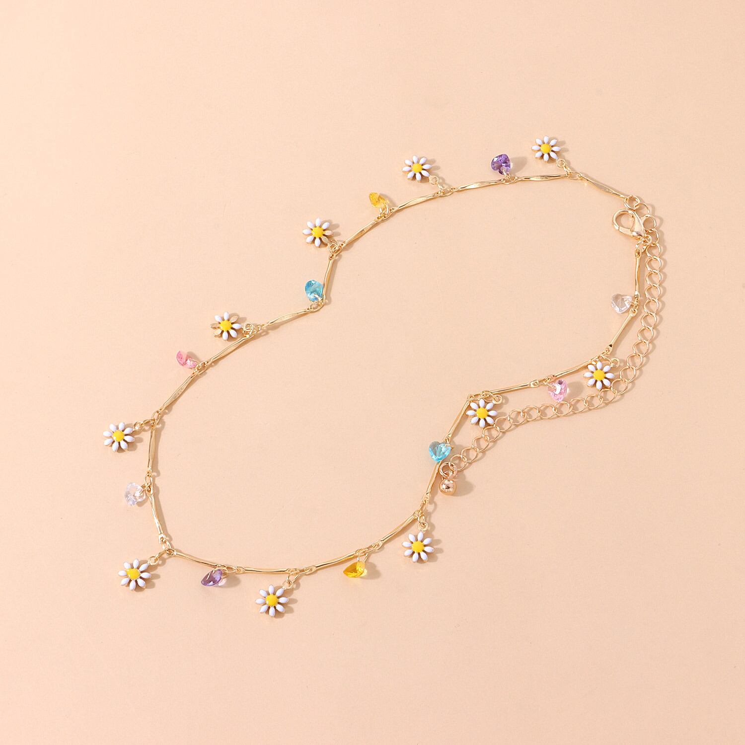 送料無料 シンプルなボヘミア手作りカラフルなひまわりチョーカーネックレス女性デイジーハートスタームーン鎖骨チェーンパーティージュエリー レース フラワーデザイン アクセサリー AE88884737598328