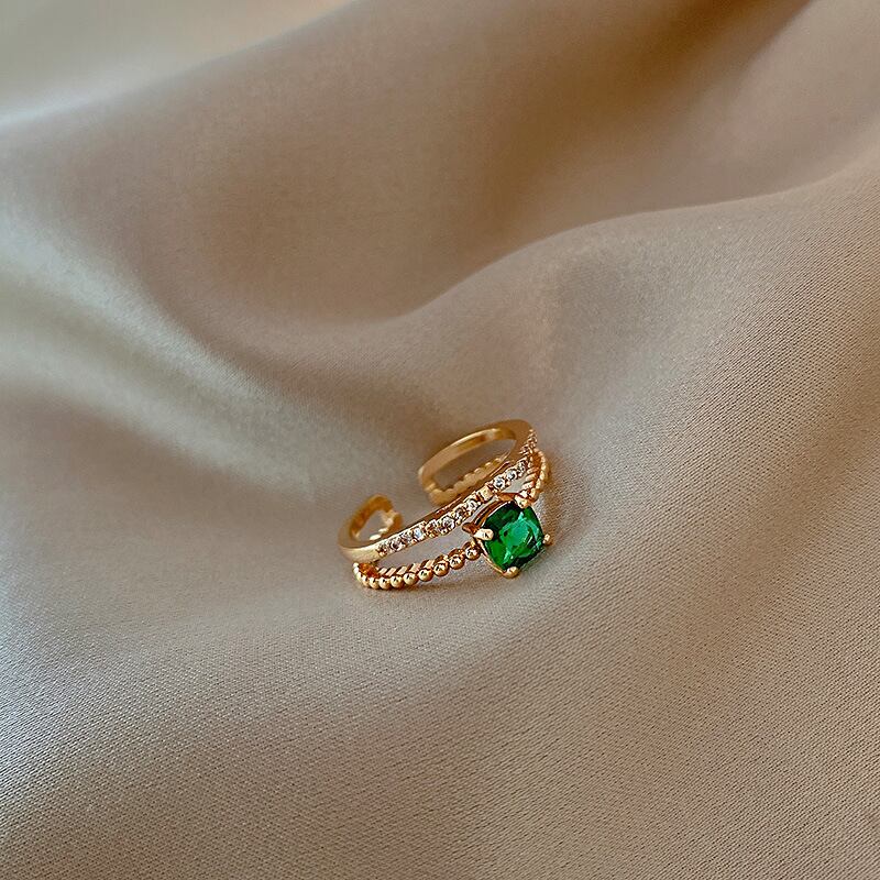 送料無料 Rinhoo2021レトログリーンダブルレイヤーリングシンプルで用途の広いオープニングアジャスタブルリング'ジュエリー 指輪 アクセサリー AE888897978130660