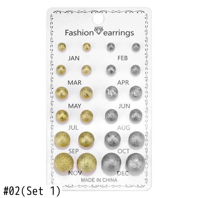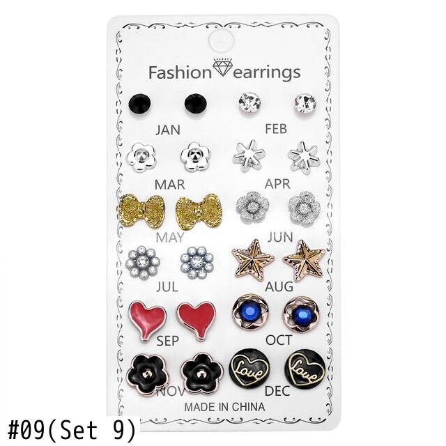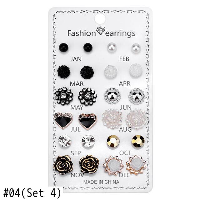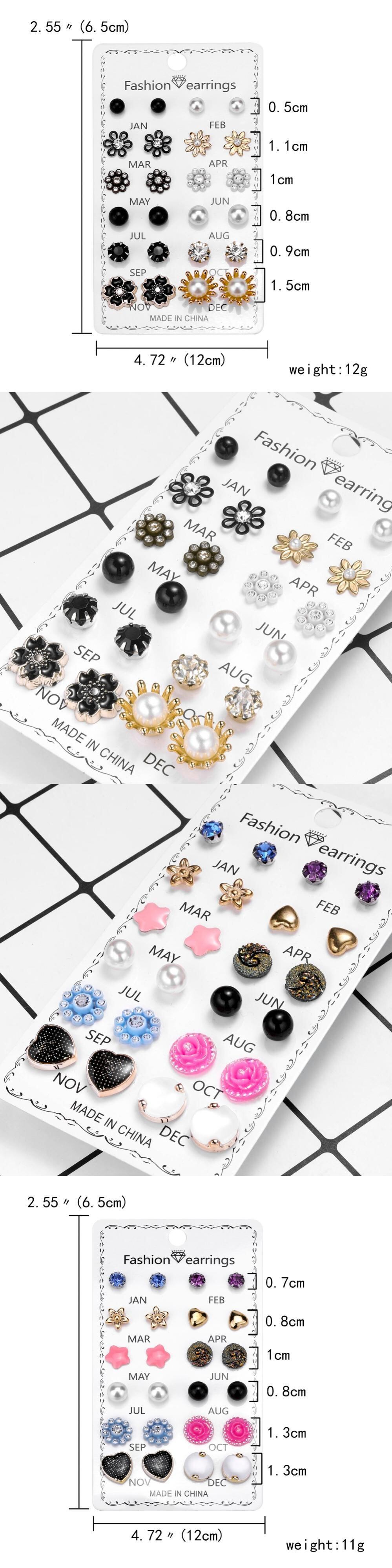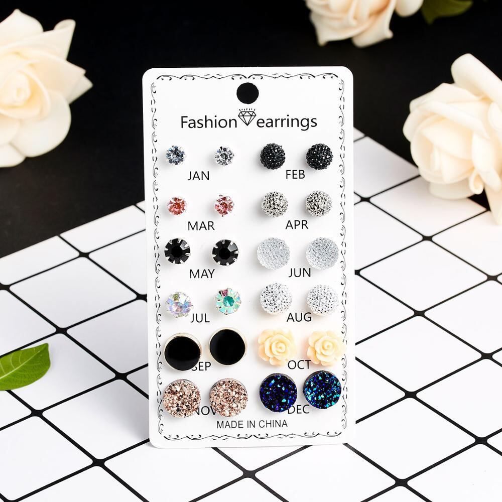 送料無料 12ペア/セットクリスタルイヤリングセット女性ジュエリーアクセサリーピアスボールスタッドピアスキット 指輪 アクセサリー AE888830375346147