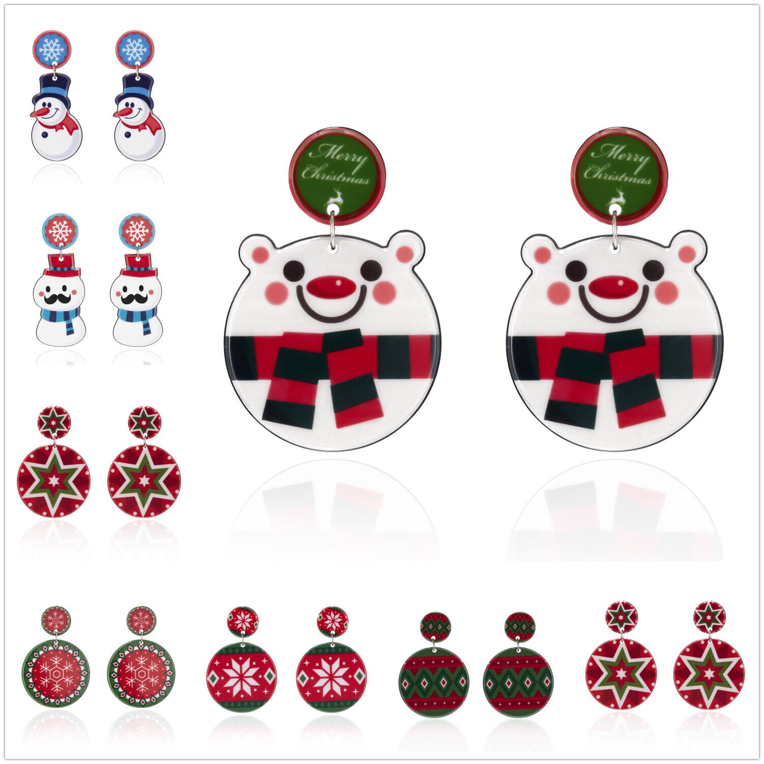 送料無料 かわいい漫画樹脂ピギースノーマンダングルピアスダブルラウンドスタースノーフレークピアス女性女の子クリスマスパーティージュエリー イヤリング 大人ガーリー スウィート キュート カジュアル リング 指輪 アクセサリー AE888869825025853