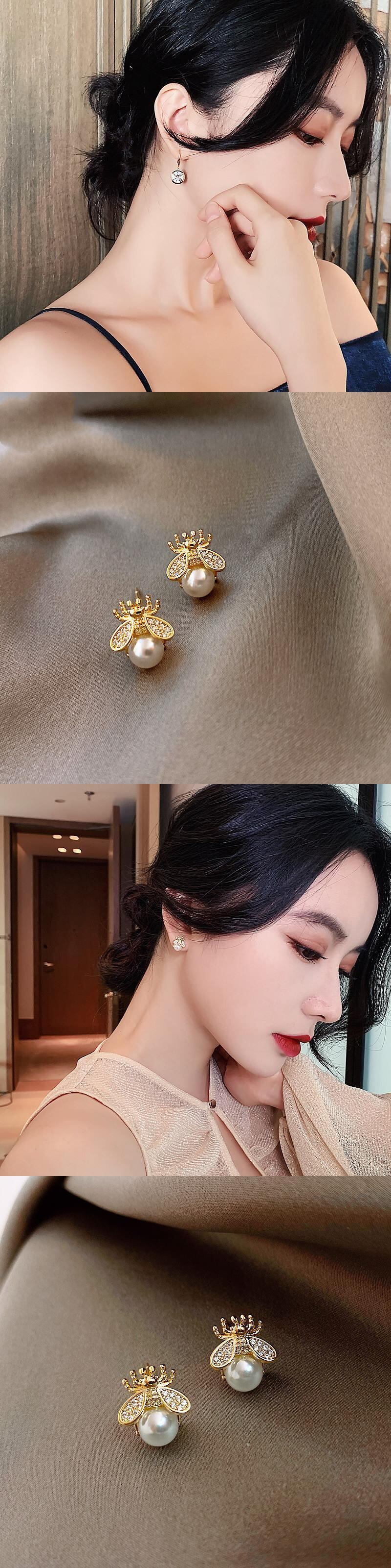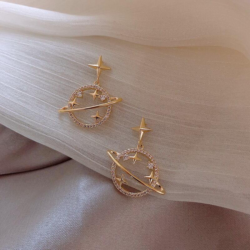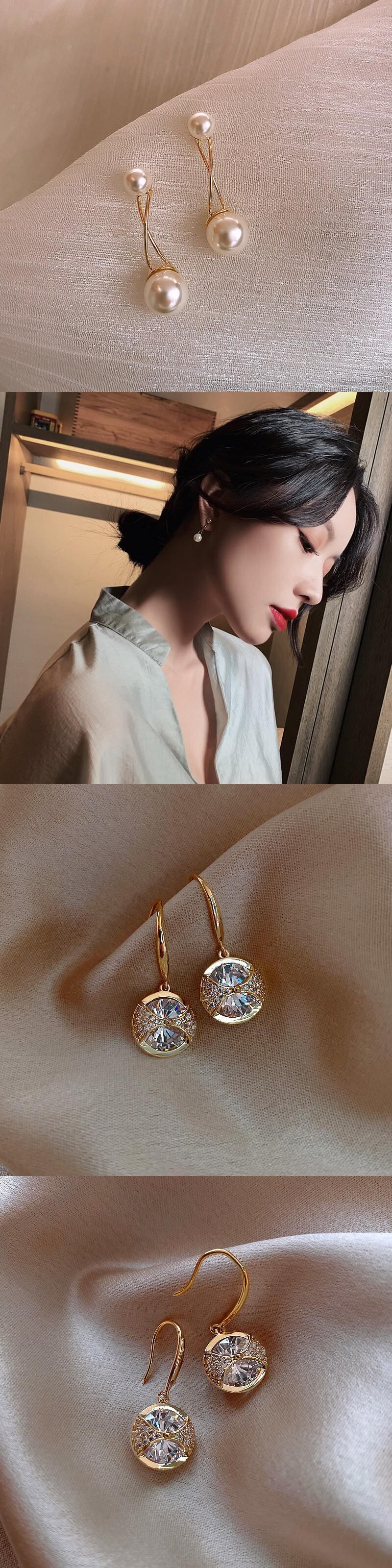 送料無料 トレンディな女性ラインストーンプラネットダングルピアスシンプルパールピアスクリスタル気質ジュエリー イヤリング 真珠 リング 指輪 アクセサリー AE888870922049713