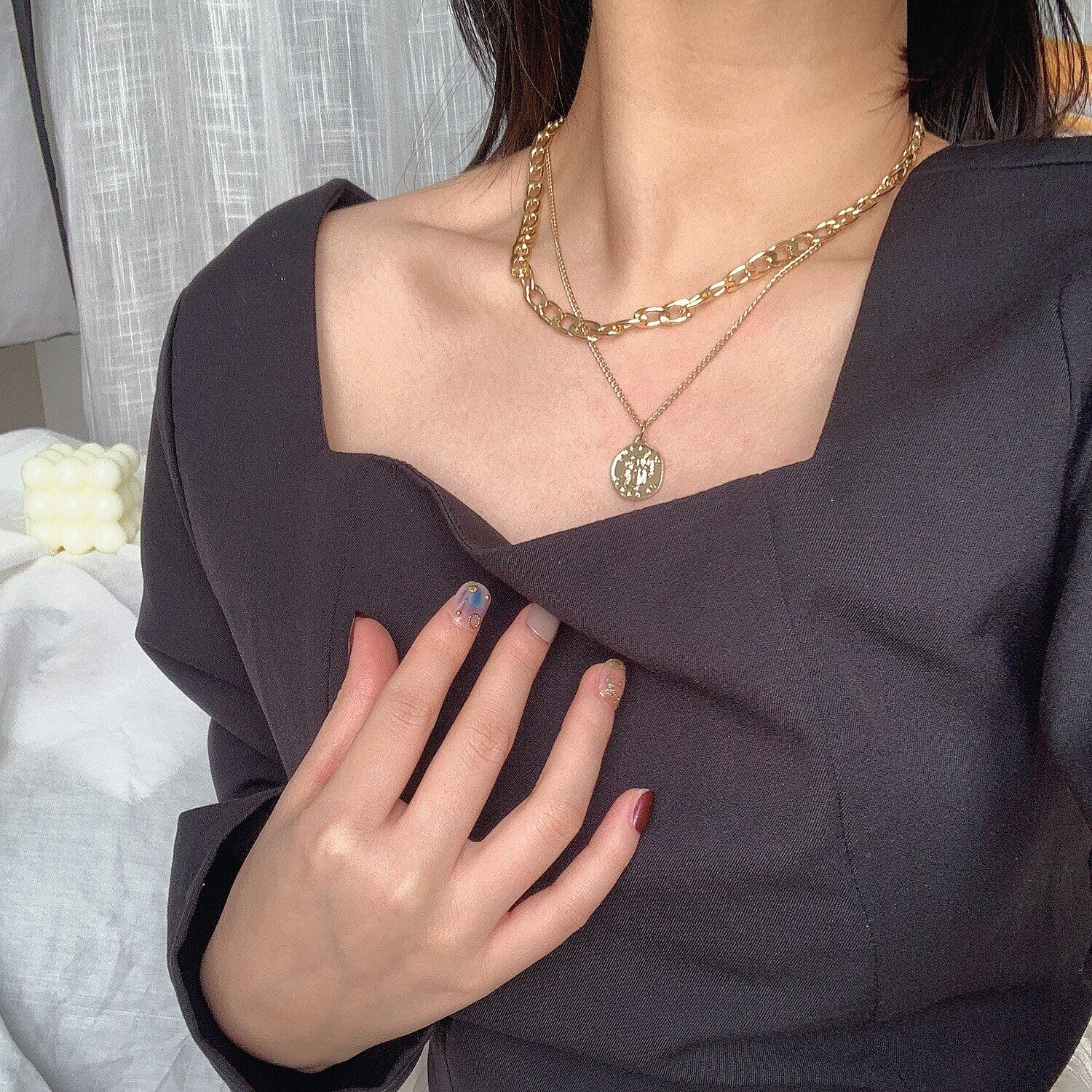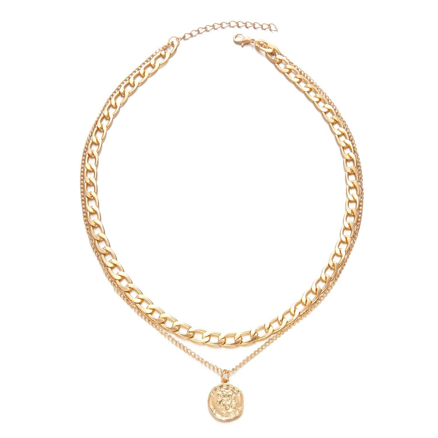 送料無料 多層チェーンネックレス&ペンダントジュエリー女性ゴールドメタルキューバリンクチェーンステートメントチョーカーネックレスパーティーギフト レース マルチレイヤー アクセサリー AE888833053159543
