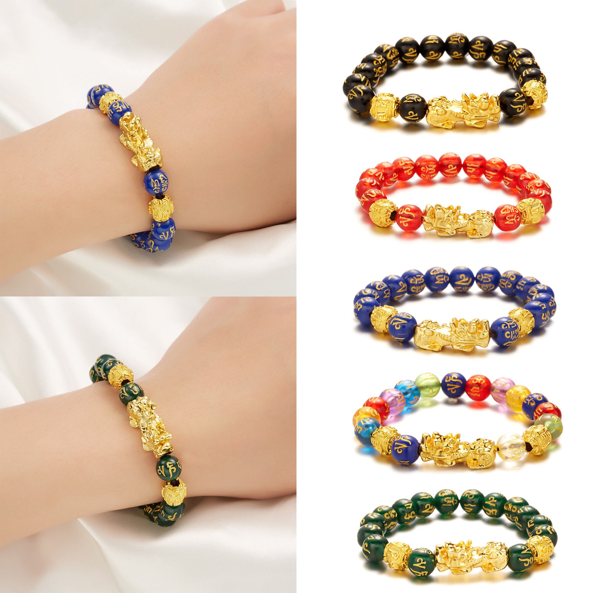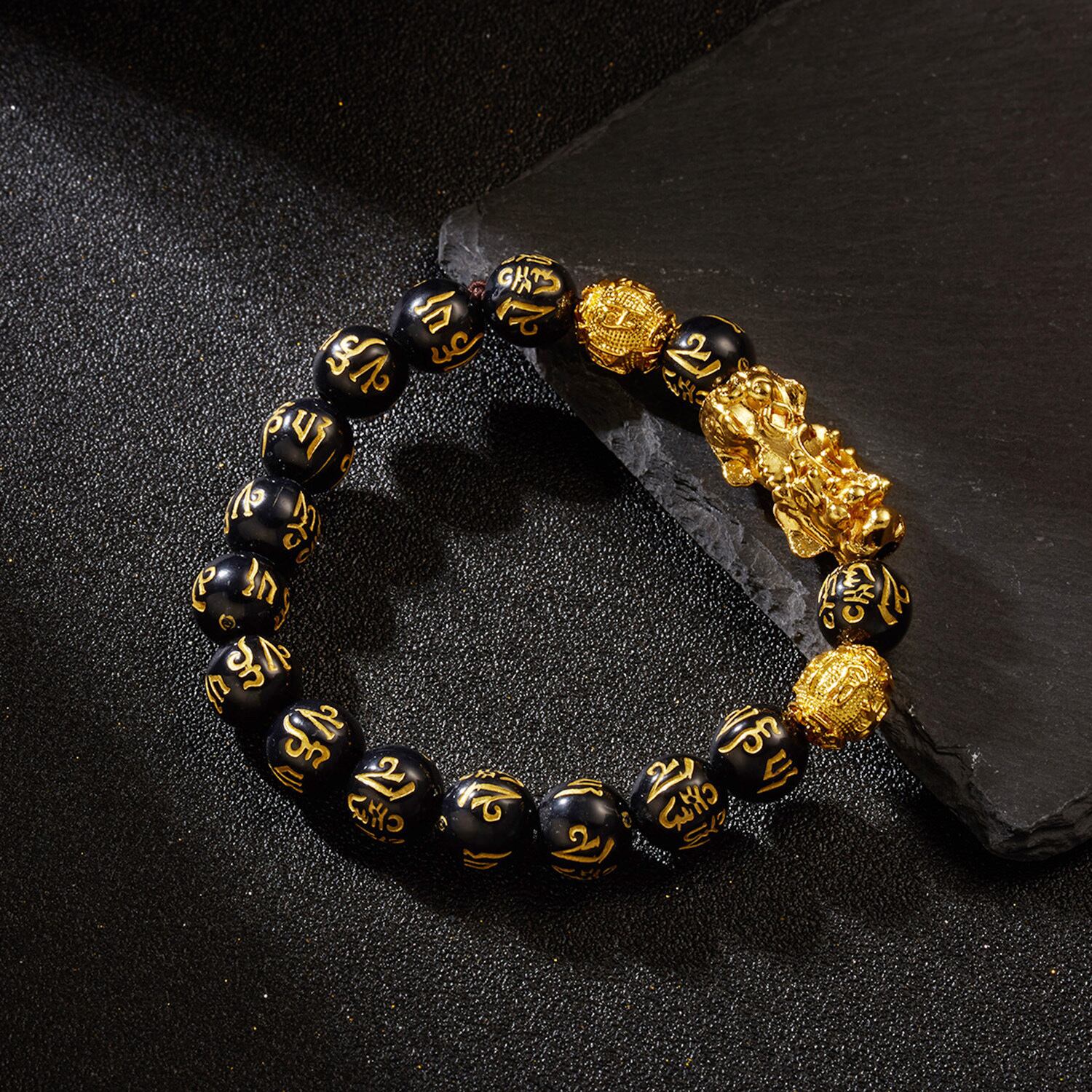 送料無料 仏教風水イミテーション黒曜石石ビーズブレスレット男性女性リストバンド貔貅富ラッキーブレスレット誕生日ジュエリー アクセサリー AE888813865835877