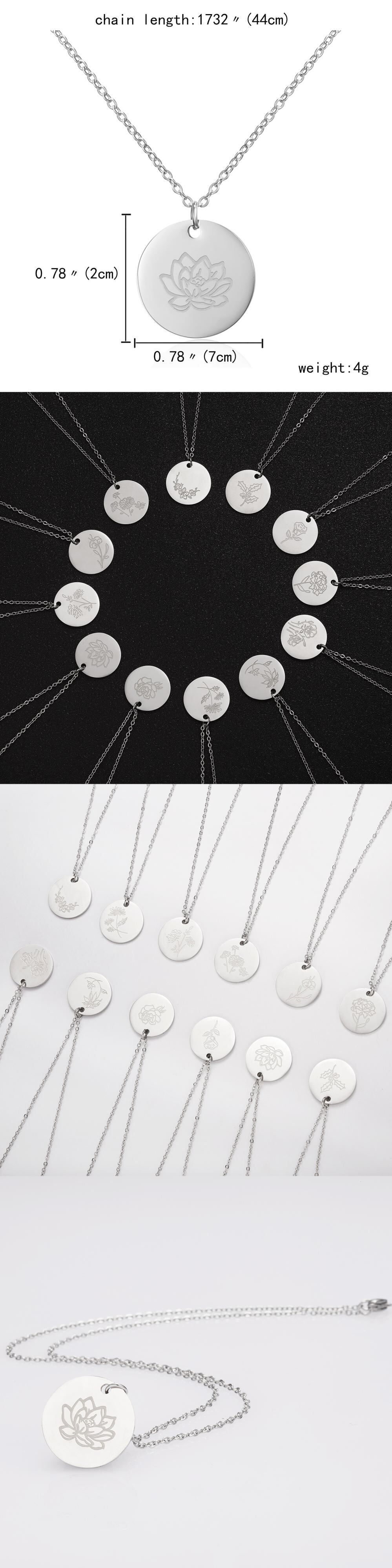 送料無料 ステンレス鋼幾何学ラウンドペンダント月間フラワーネックレスシルバーカラーパーソナリティペンダントネックレスカラージュエリー女性 レース フラワーデザイン 銀 アクセサリー AE888860551748932