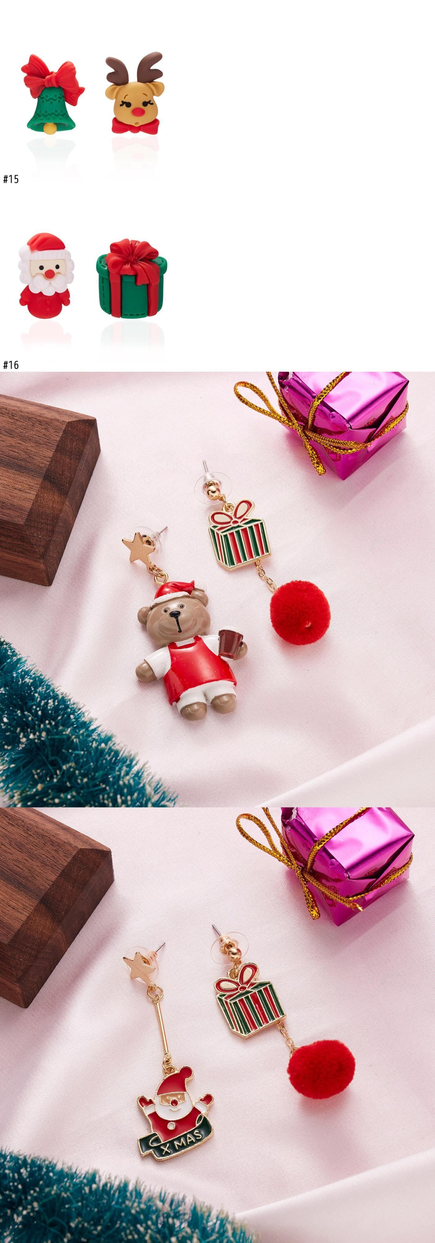 送料無料 非対称スターベア不規則なぬいぐるみボールイヤリング女性クリスマスかわいいサンタクロース鹿のイヤリングジュエリー 大人ガーリー スウィート キュート カジュアル 指輪 アクセサリー AE888885876853068