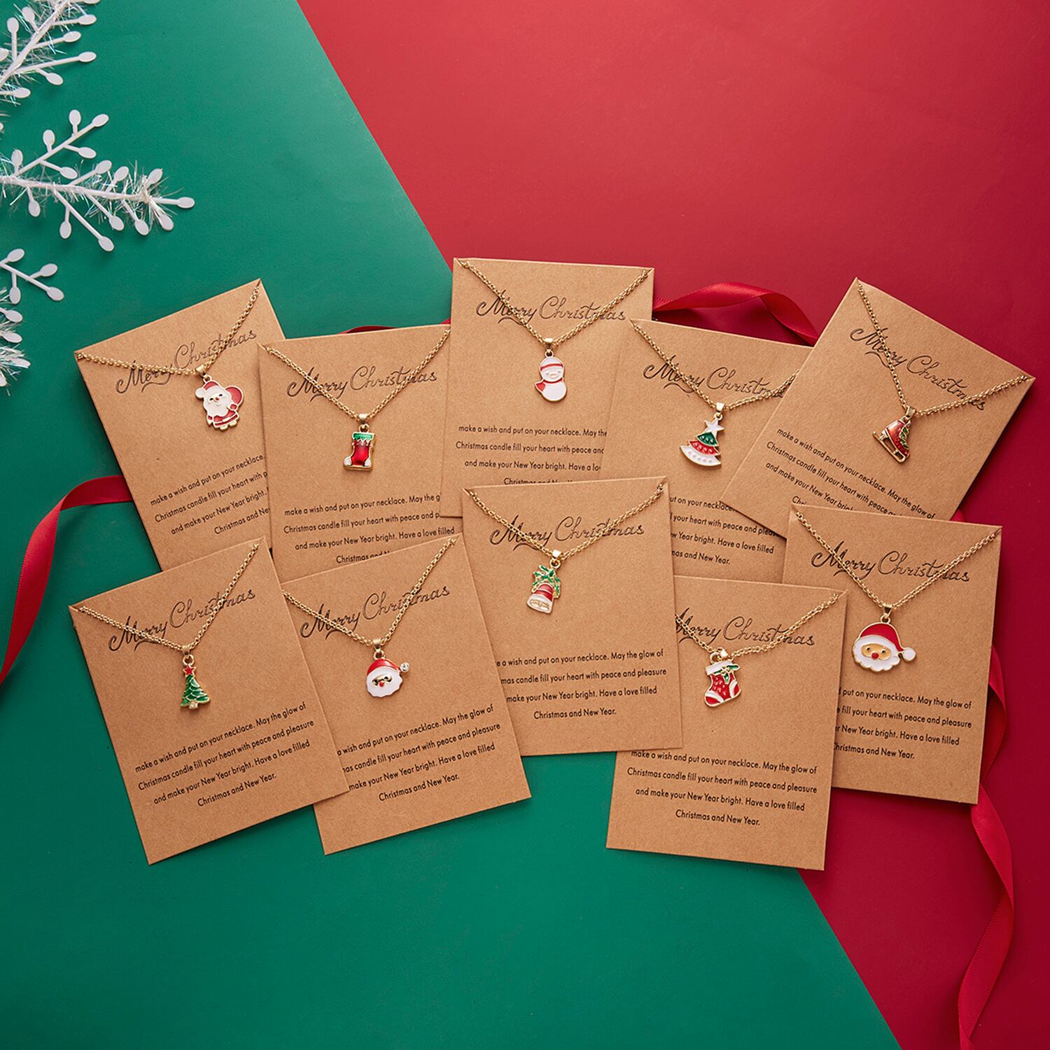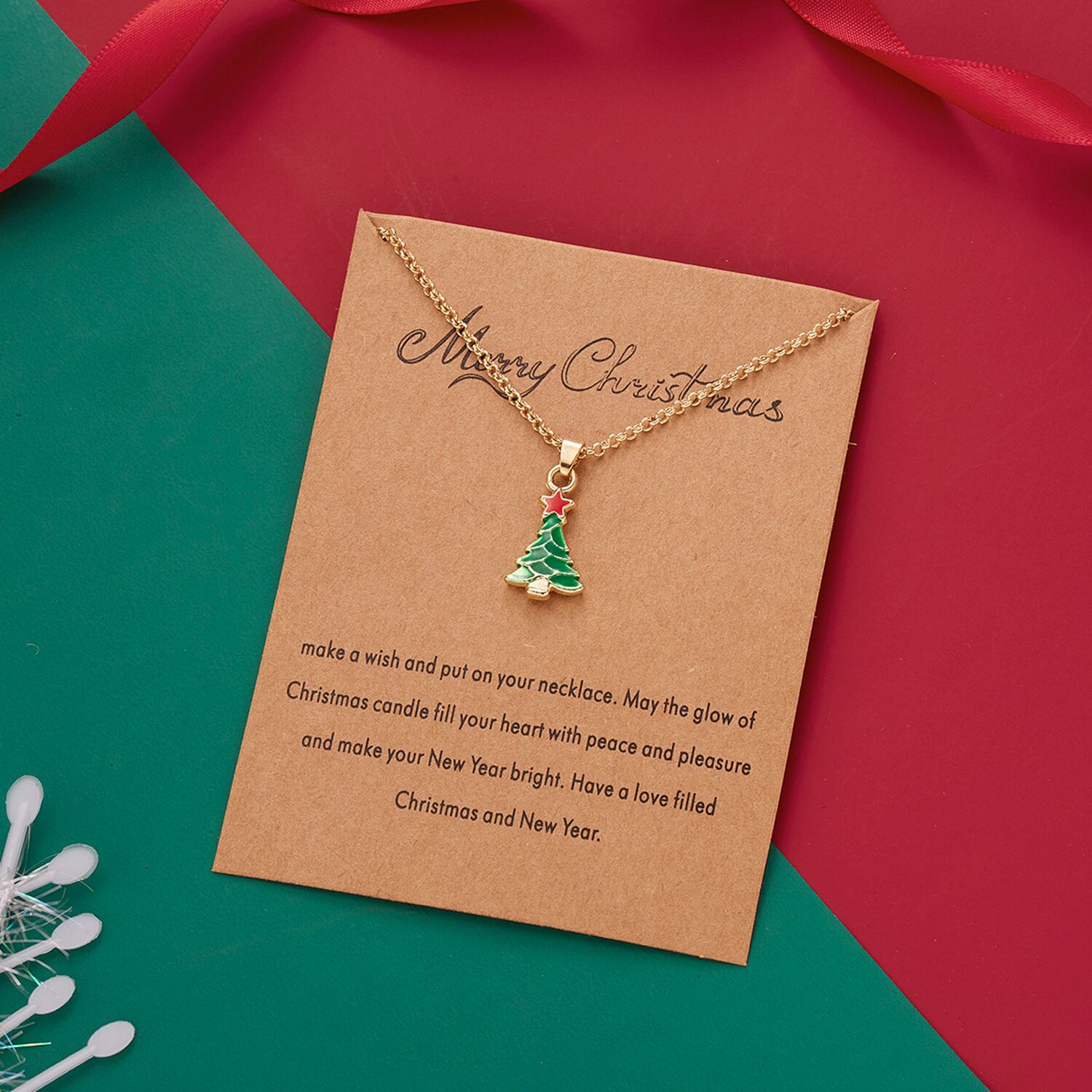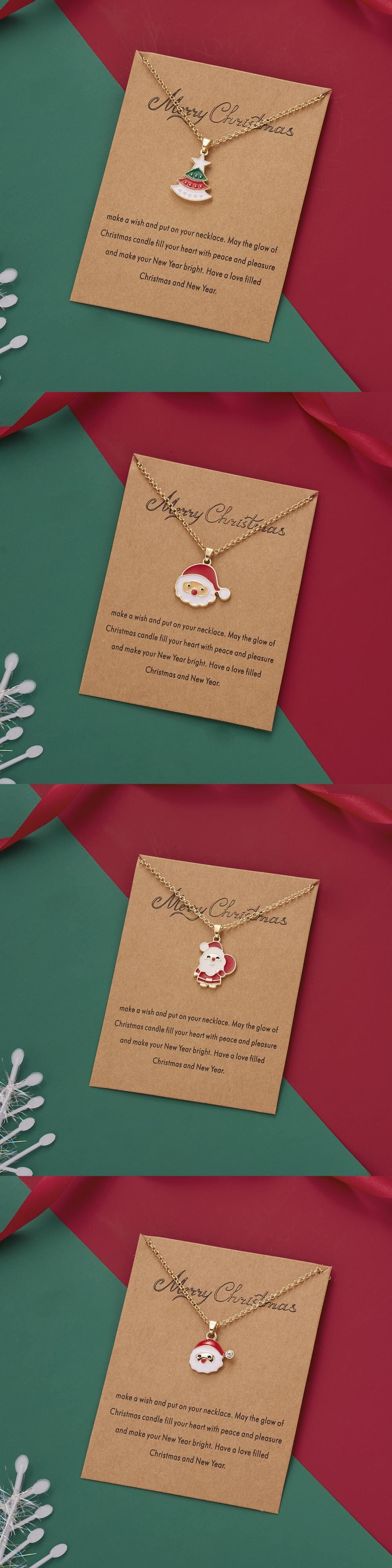 送料無料 2021年トレンドクリスマスネックレス女性の女の子クリスマスツリーサンタクローススノーマンペンダントネックレスジュエリークリスマスイヤーギフト レース アクセサリー AE888844453665402