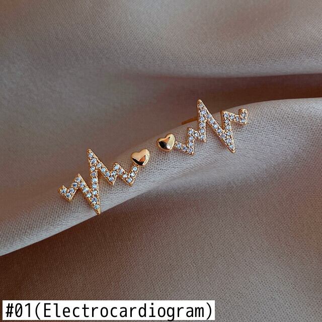 送料無料 2021クリエイティブハート心電図スタッドピアス女性ゴールドカラーラインストーンピアスピアスジュエリーアクセサリーギフト イヤリング リング 指輪 アクセサリー AE888835946708374
