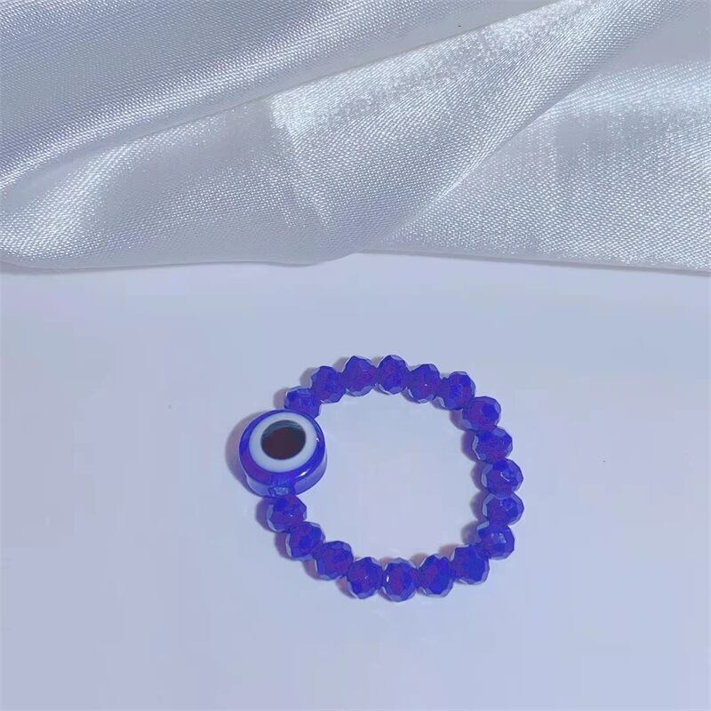 送料無料 トルコのラッキーイービルアイリング女性ブルーイービルアイビーズリング女性手作りアクリルアジャスタブルフィンガーリングハンドジュエリー17mm 指輪 アクセサリー AE88888106718679