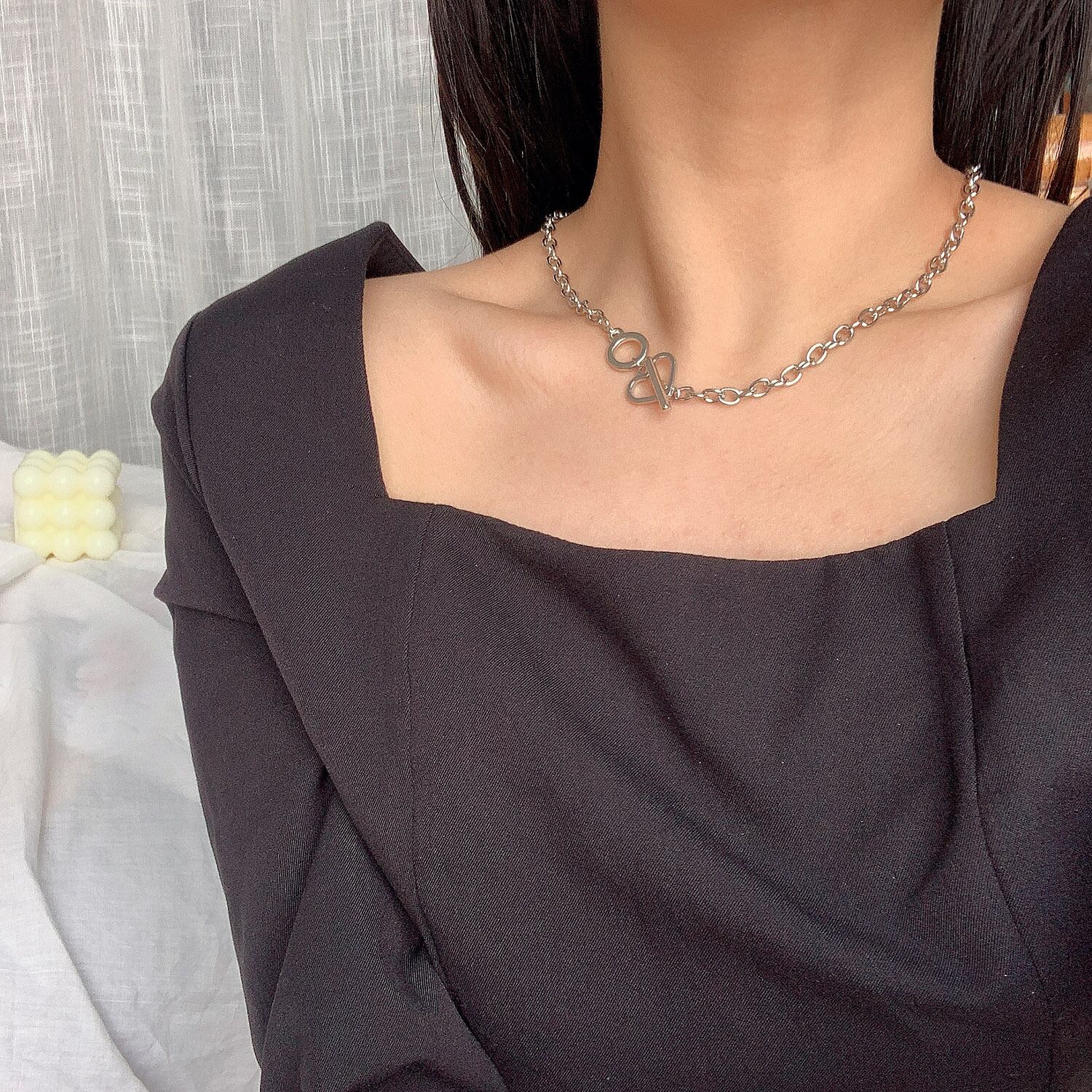 送料無料 トレンディな中空ハートクラスプネックレス女性ゴールドシルバーカラーパンククラビクルチェーンヒップポップチョーカーネックレスガールズパーティージュエリー レース 銀 アクセサリー AE888832127841247