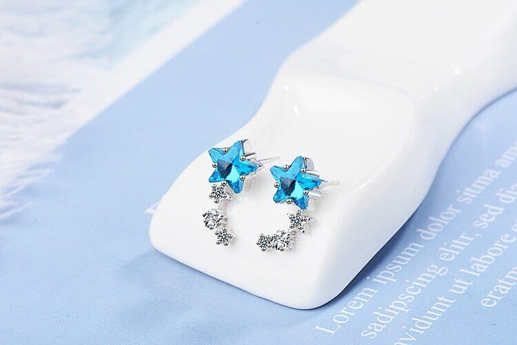 送料無料 ANENJERYシルバーカラーLuxuyスタージルコンイヤリングブルークリスタルウェディングパーティーイヤースタッドジュエリーS-E767 指輪 銀 アクセサリー AE165530017637893