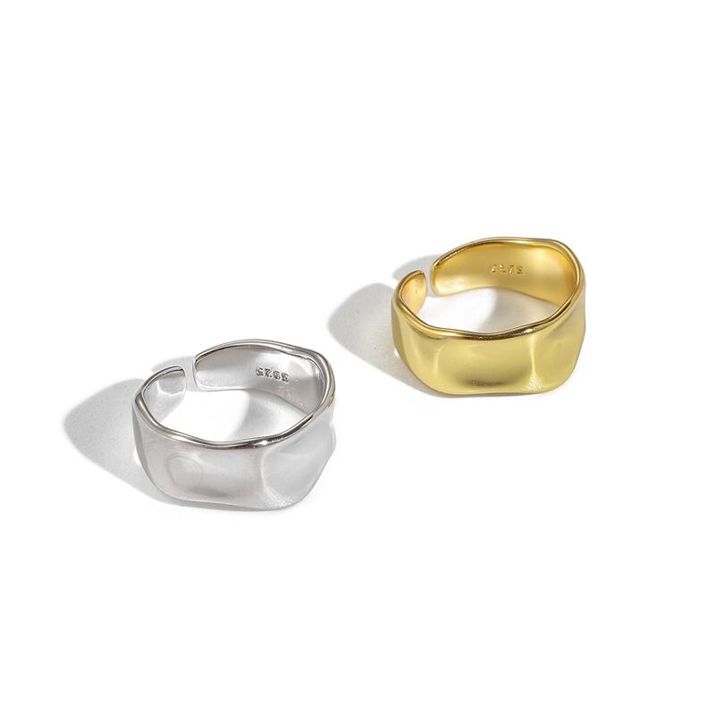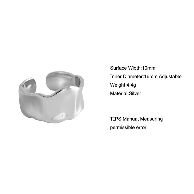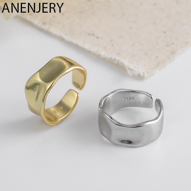 送料無料 ANENJERYシルバーカラー不規則な滑らかなワイドオープニングリングパーソナリティ幾何学的な凹面凸波リング女性S-R578 指輪 銀 アクセサリー AE165525916622639