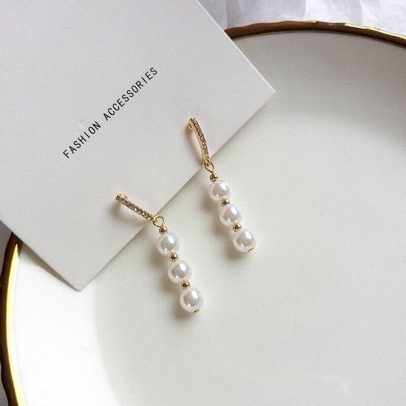 送料無料 ANENJERYシルバーカラーパールダングルウェディングイヤリングレディースゴールドCZイヤリング花嫁ジュエリーギフトS-E1333 真珠 指輪 銀 アクセサリー AE165595994797541