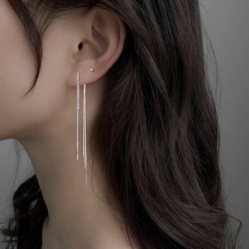 送料無料 ANENJERYシルバーカラーロングテルチェーンピアスレディースキュービックジルコンイヤーラインダングルピアスパーティージュエリー2022 イヤリング リング 指輪 銀 アクセサリー AE165539702236155
