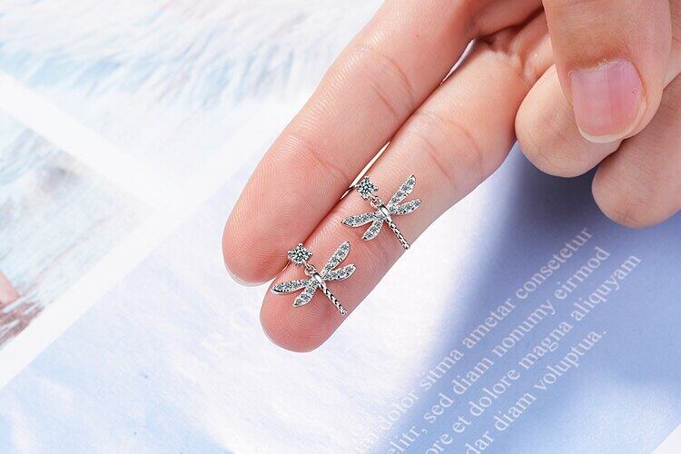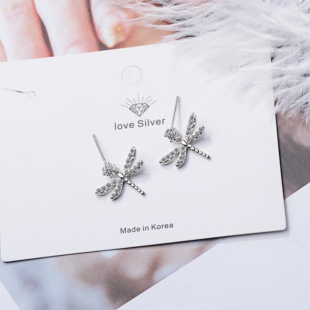 送料無料 ANENJERYシルバーカラーシンプルモザイクジルコントンボスタッドピアスレディーススタッドピアスギフトbrincosoorbellenS-E807 イヤリング リング 指輪 銀 アクセサリー AE165546565222456