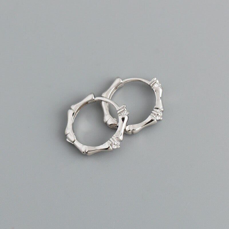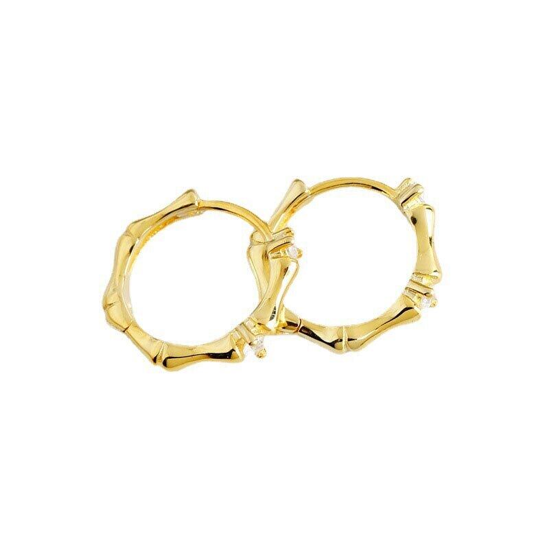 送料無料 ANENJERYシルバーカラー竹型フープピアスクリエイティブジルコンフレンチサークルピアスpendientesmujer イヤリング リング 指輪 銀 アクセサリー AE165595805948185