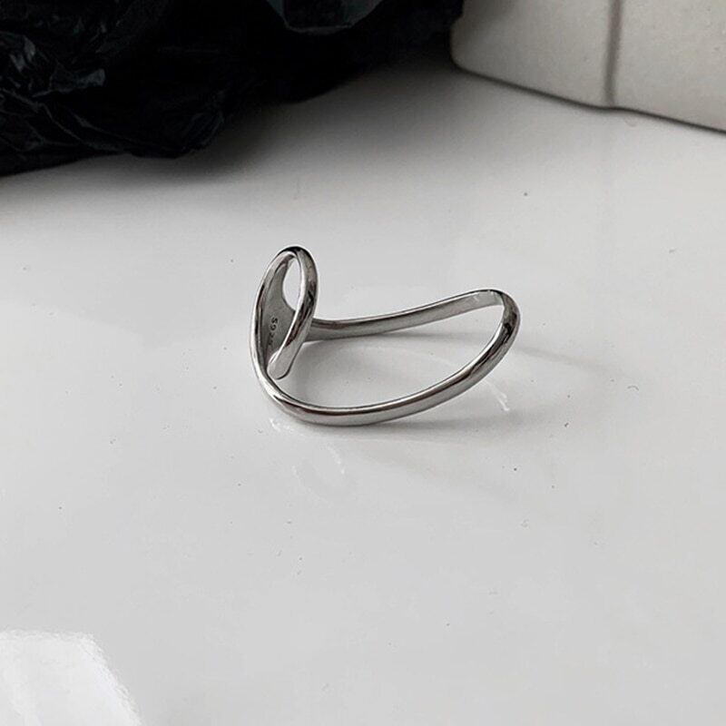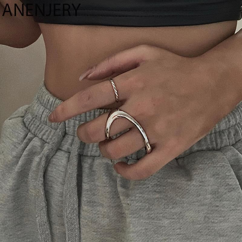送料無料 ANENJERYシルバーカラー2本指不規則幾何学的オープンリング女性男性イブニングパーティージュエリーギフトS-R799 指輪 銀 アクセサリー AE165543053274765