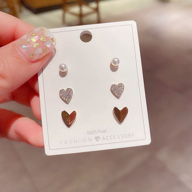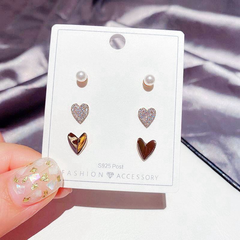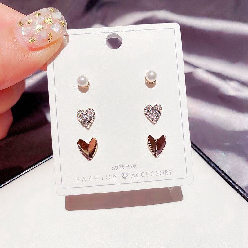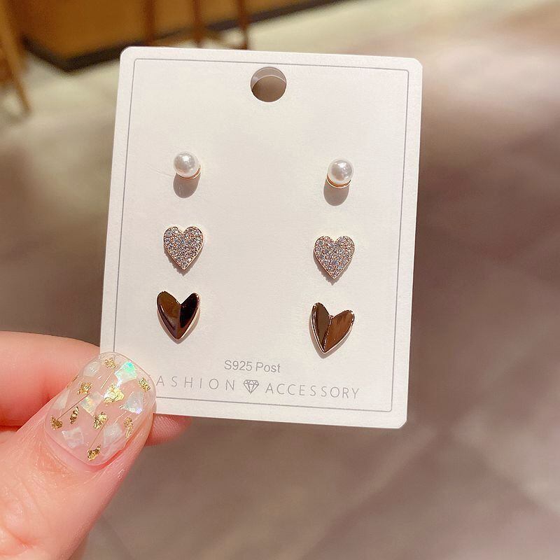 送料無料 ANENJERY6ピースデイリーイヤリングセットスモールラブハートスタッドピアスセットレディースローズゴールドカラージュエリーギフトS-E1236 指輪 アクセサリー AE165539987738051