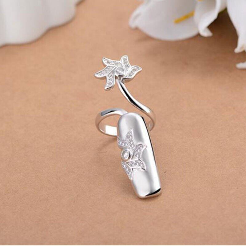 送料無料 ANENJERYシルバーカラー4sチャーミングなジルコンフィンガーネイルリングレディースフィンガーネイルプロテクティブジュエリーS-R189 指輪 銀 アクセサリー AE165581674236698