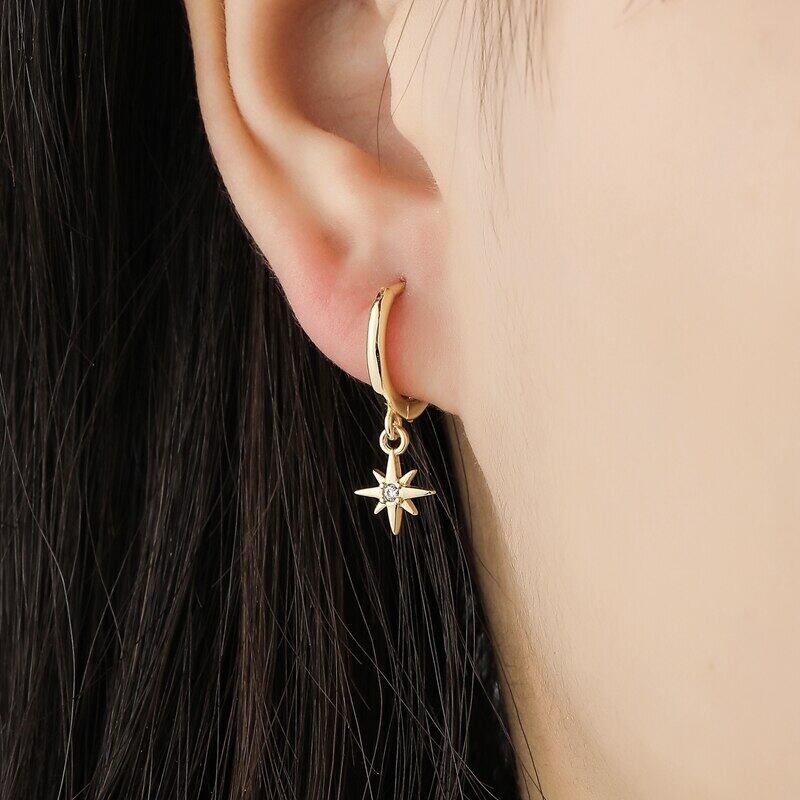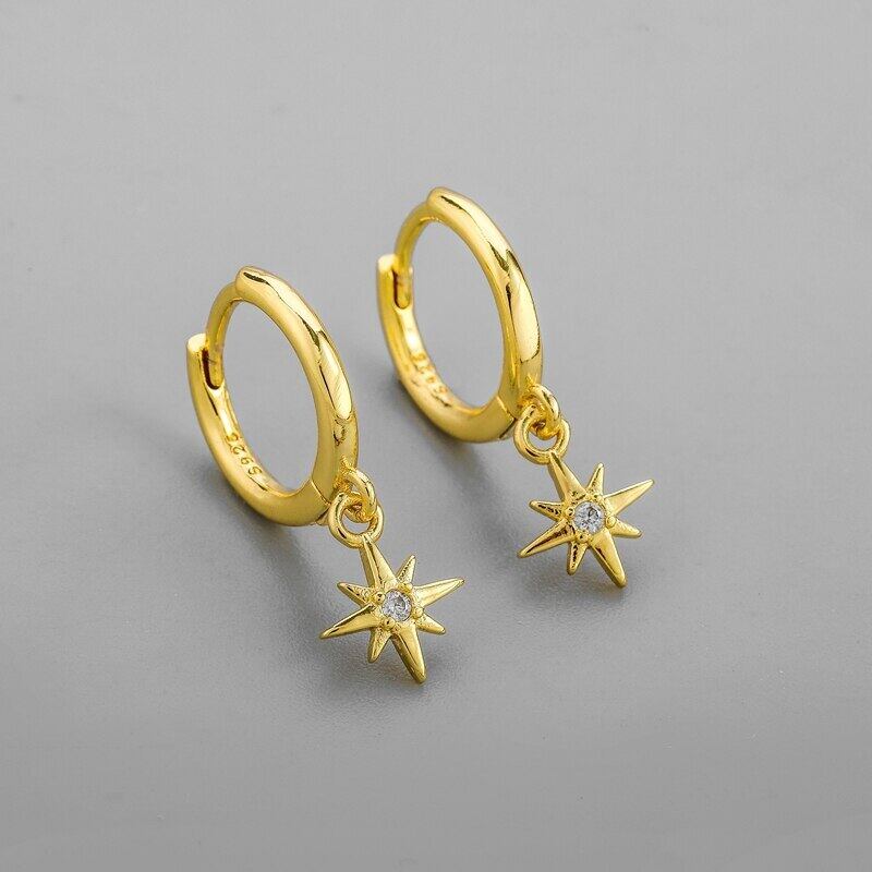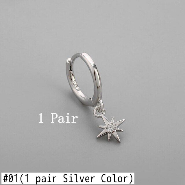 送料無料 ANENJERYシルバーカラースターフープイヤリング女性男性ジュエリーパーティー宴会アクセサリーギフト 銀 アクセサリー AE16558100291461