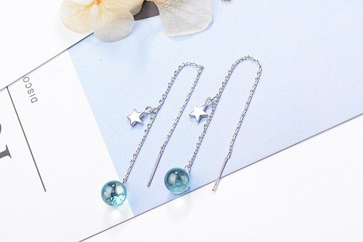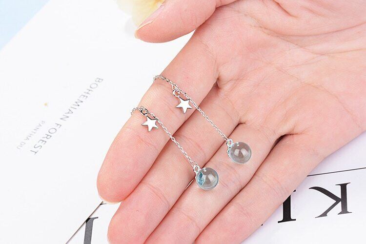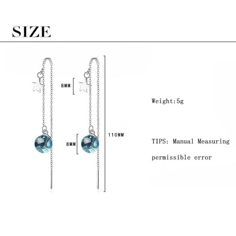 送料無料 ANENJERYシルバーカラーブループラネットロングイヤリングレディースガール人工水晶玉スターTelイヤリングS-E667 指輪 銀 アクセサリー AE16553711630987