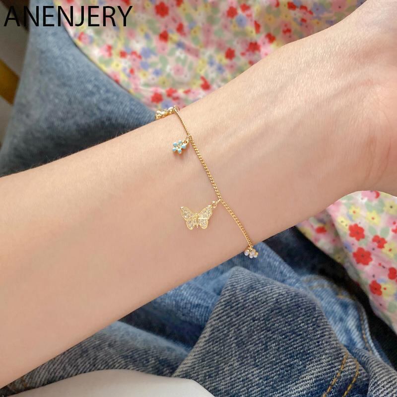 送料無料 ANENJERYトレンディなシルバーカラーバタフライブレスレット女性ジュエリーカップルウェディングジュエリーギフト 銀 アクセサリー AE165592147552994