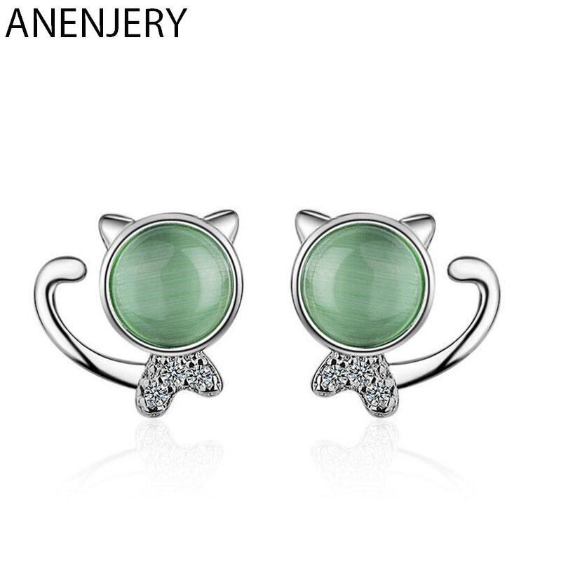 送料無料 ANENJERYシルバーカラーオパールキャットシェイプスタッドピアスナチュラルキャッツアイナチュラルストーンピアスジルコンジュエリーレディースS-E494 イヤリング 蛋白石 リング 指輪 銀 天然 アクセサリー AE165593062125494