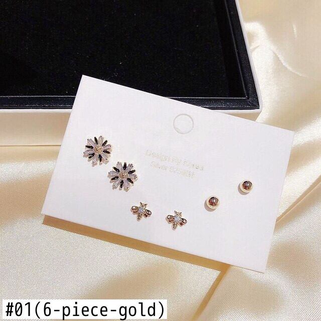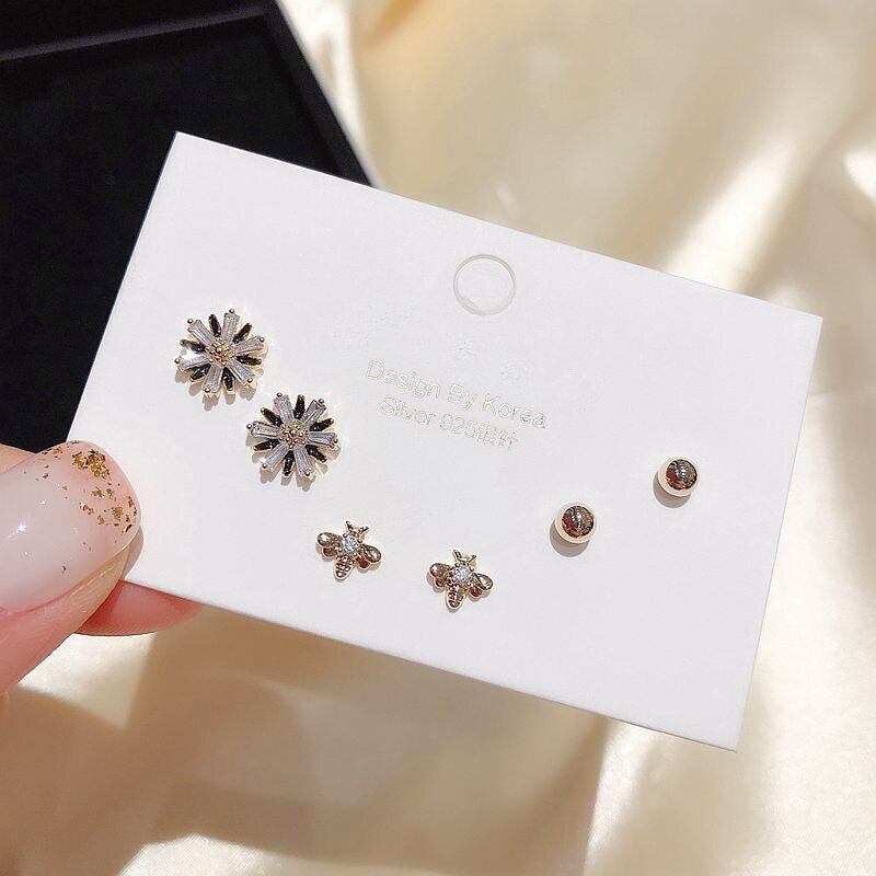 送料無料 ANENJERYシャイニージルコニアクリスタルフラワーミツバチスタッドピアスセットトレンディな6ピースピアスセットレディースギフトS-E1198 イヤリング フラワーデザイン 風信子石 アクセサリー AE165579964209109
