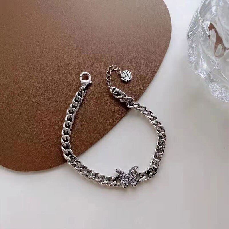 送料無料 ANENJERYシルバーカラーマイクロパヴェジルコンバタフライシックチェーンブレスレットレディースクールレトロジュエリー 銀 アクセサリー AE165565635329465