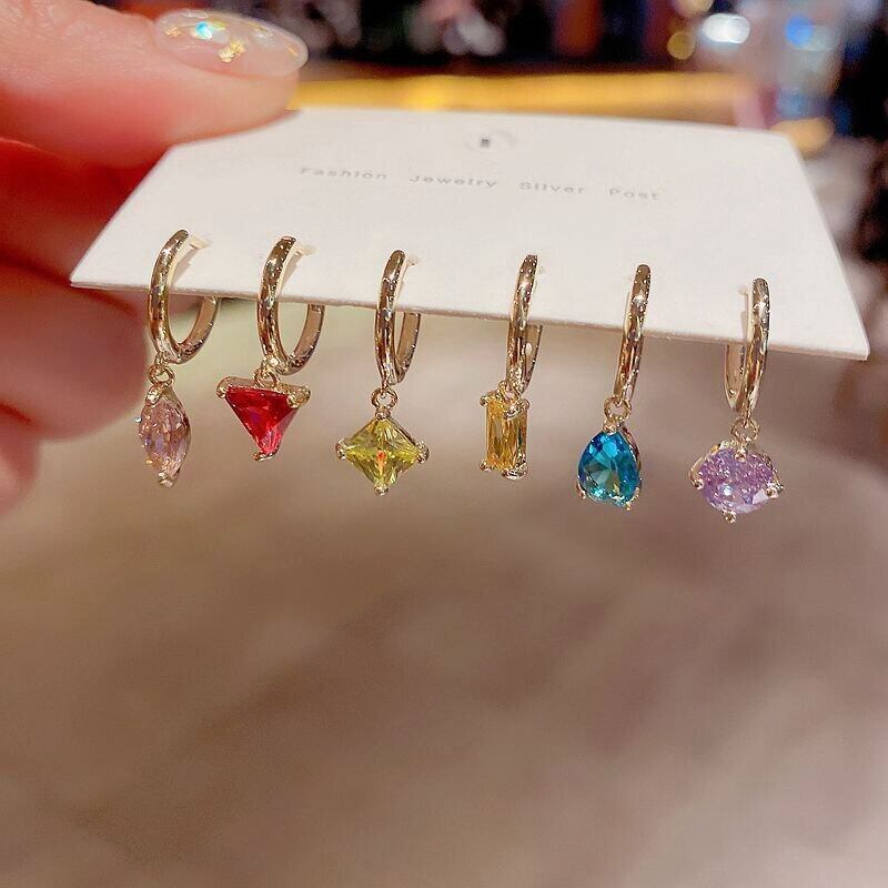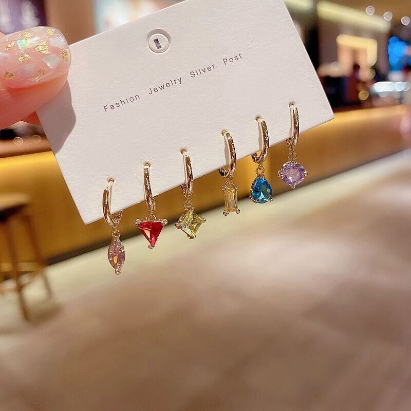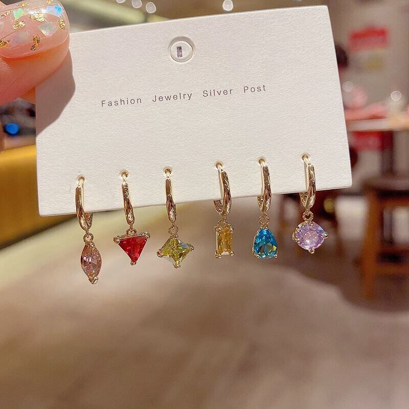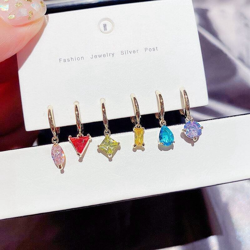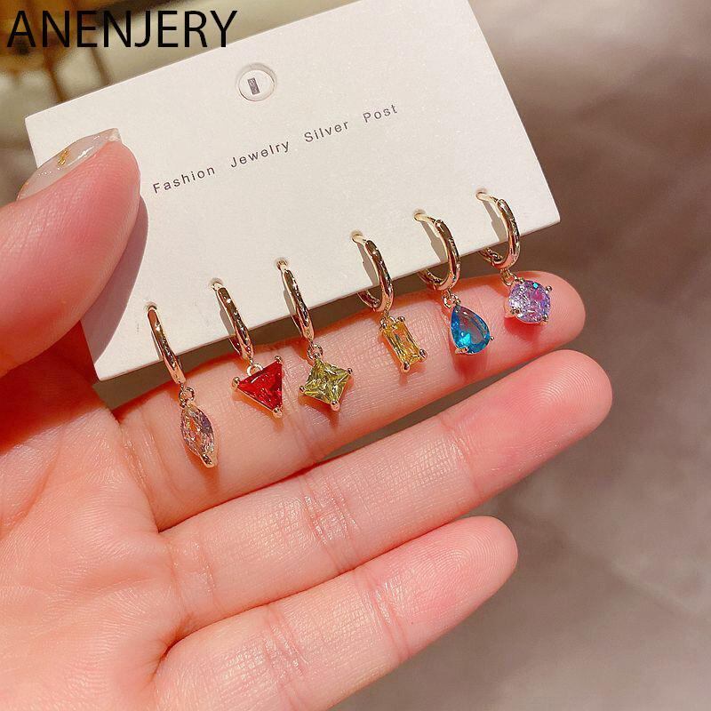送料無料 ANENJERY6個/セットジルコンピアスセットレディース幾何学的カラフルジルコンフープピアスセットジュエリーS-E1293 イヤリング リング 指輪 アクセサリー AE16551688399457