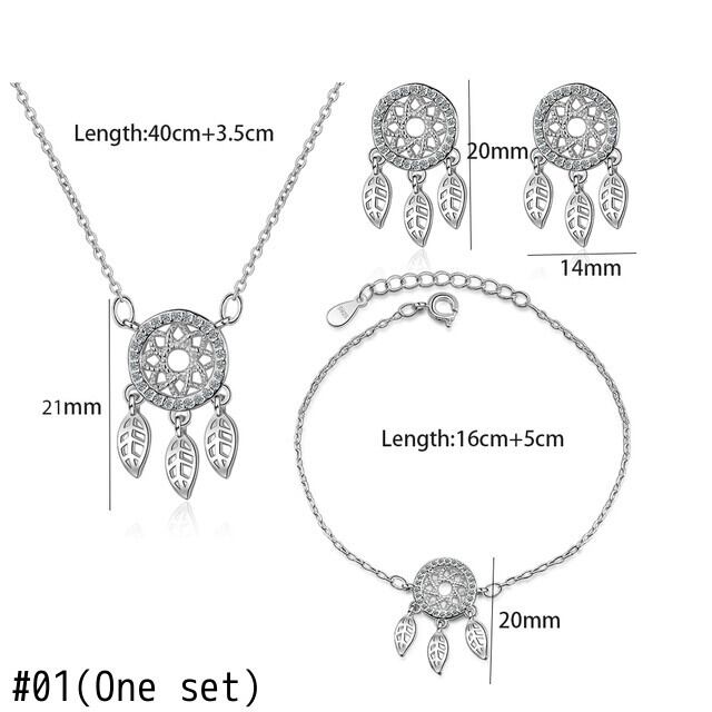 送料無料 ANENJERYシルバーカラードリームキャッチャーエレメントジュエリーセットテルペンダントネックレスブレスレットイヤリングレディースギフト レース 指輪 銀 アクセサリー AE165585187793065