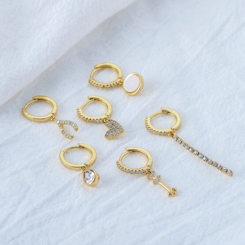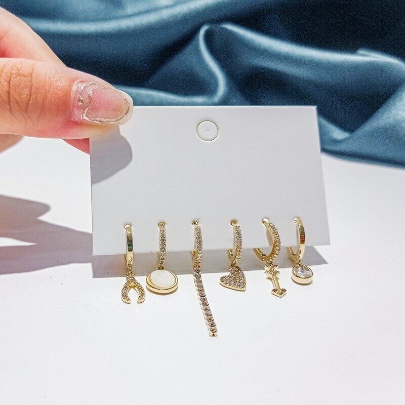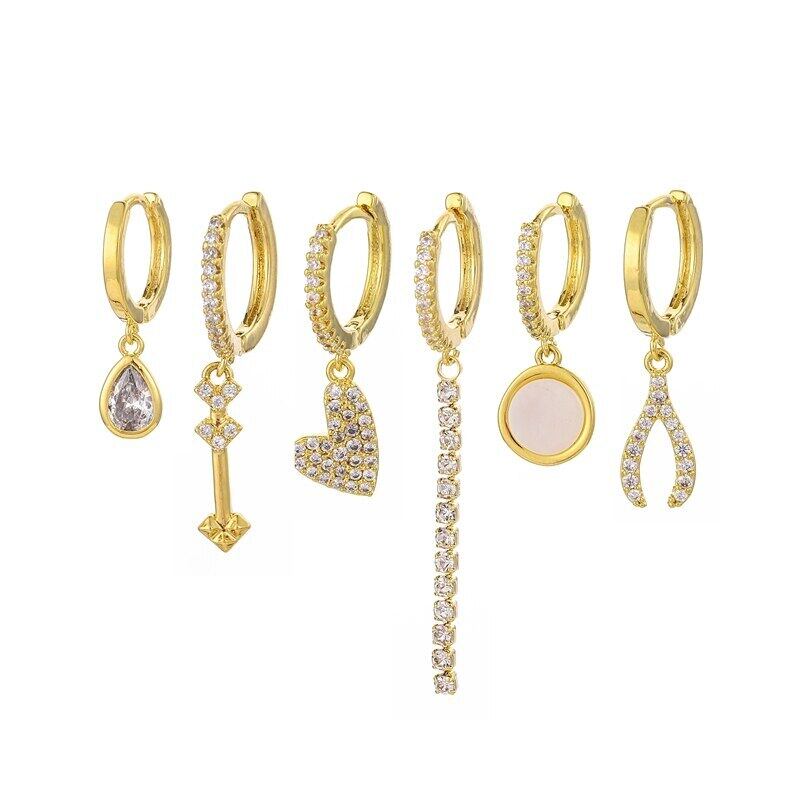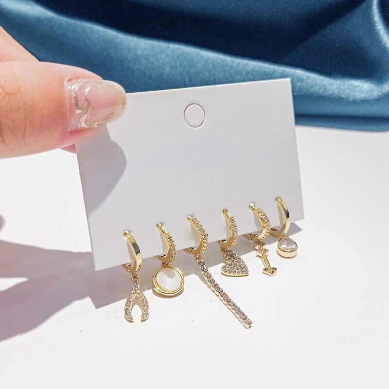 送料無料 シルバーカラーマイクロパヴェジルコンウィッシュボーンハートテルフープピアスラグジュアリーシャイニー6ピースピアスセットパーティージュエリー イヤリング リング 指輪 銀 アクセサリー AE165549698360406