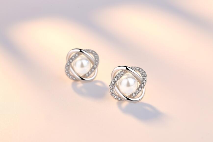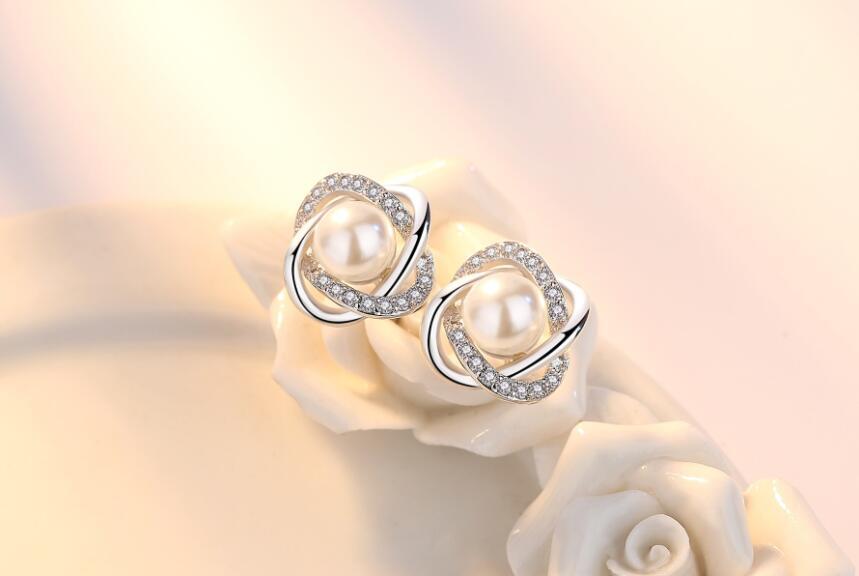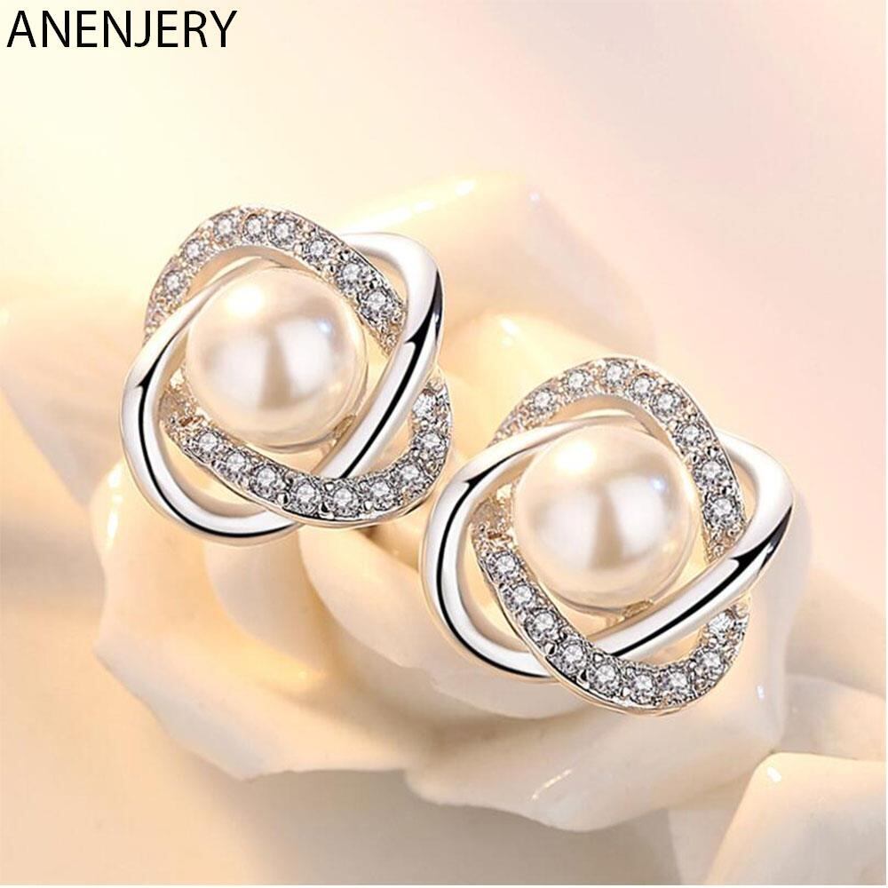 送料無料 ANENJERYシルバーカラーマイクロジルコンシェルパールツイストピアスレディースグッドフレンズギフトブリンコスファインジュエリーS-E290 イヤリング 真珠 リング 指輪 銀 アクセサリー AE165515852027808