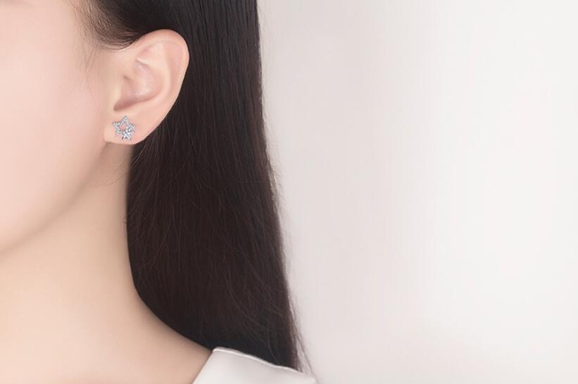 送料無料 ANENJERYシルバーカラーキラキラ光るマイクロジルコンスター型スタッドピアスレディースジュエリーギフト発送S-E580 イヤリング リング 指輪 銀 アクセサリー AE165596023603716