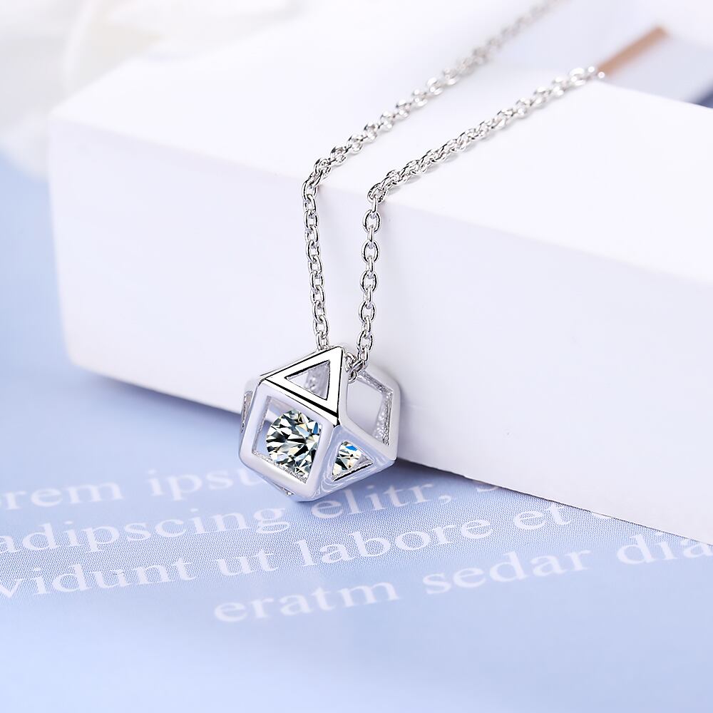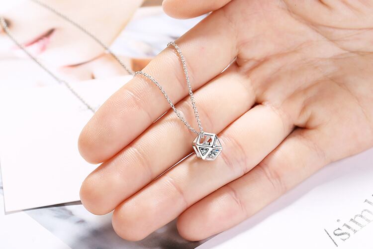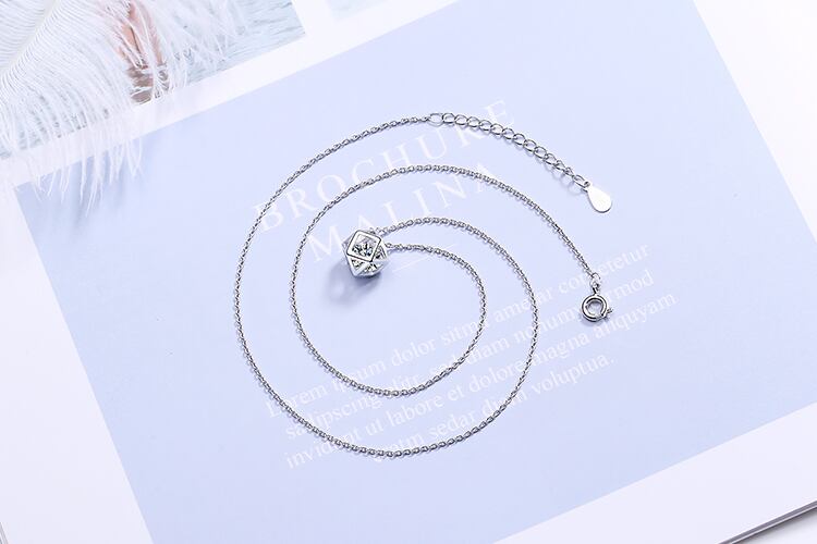 送料無料 ANENJERYシルバーカラーシンプルキューブスクエアAAAジルコンペンダントネックレスジュエリーラバーギフト発送S-N372 レース 銀 スクウェア アクセサリー AE165530655269113