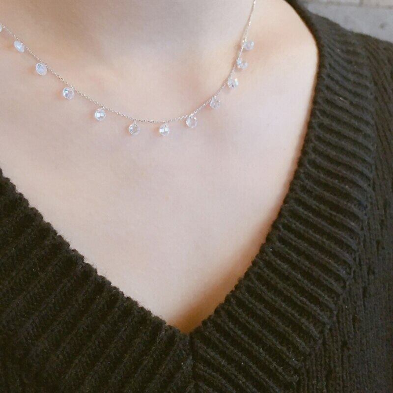 送料無料 ANENJERYシルバーカラー銅ブリンブリンジルコンテルペンダントネックレス女性気質鎖骨チェーンジュエリー レース 銀 アクセサリー AE165593401168497