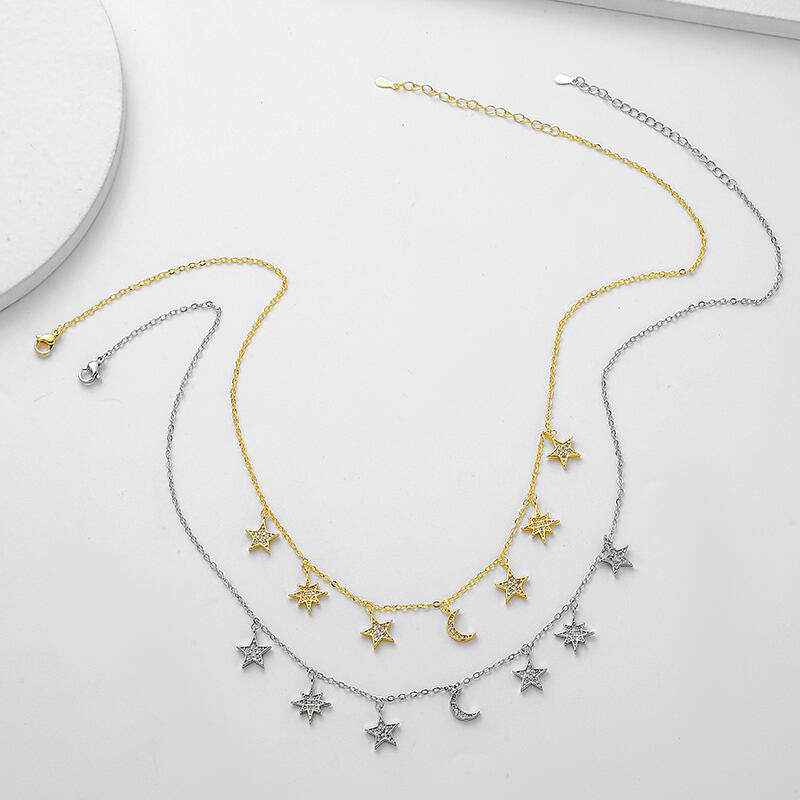 送料無料 マイクロパヴェジルコンムーンスターTelネックレス女性18Kゴールドメッキチョーカーネックレスジュエリー レース アクセサリー AE165566048007028