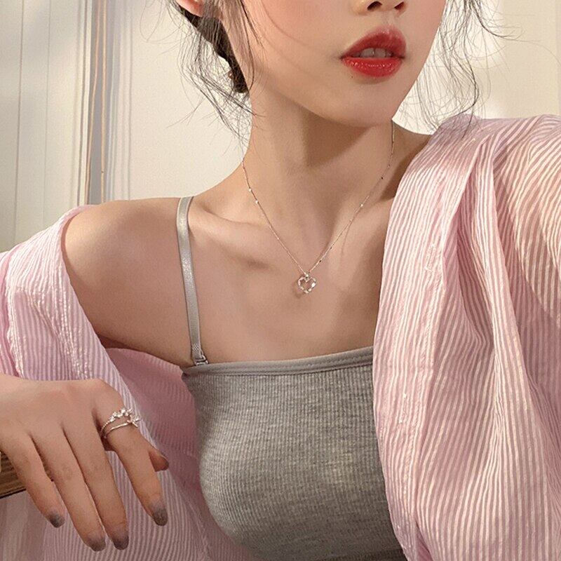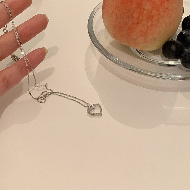 送料無料 ANENJERYシルバーカラージルコンシャイニーラブハートペンダントネックレスレディースガールシンプルクリック鎖骨チェーン レース 銀 アクセサリー AE165517727435601